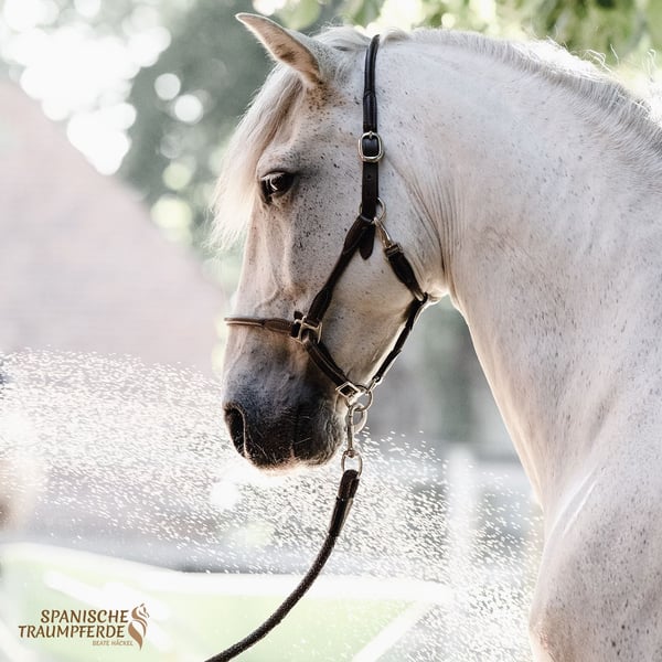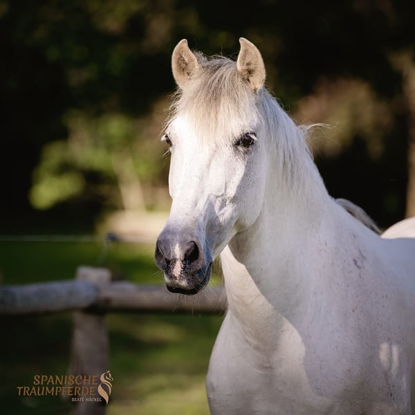 Dieser wundervolle PRE-Schimmelwallach hatte bereits sein zu Hause gefunden und wurde von Herzen geliebt. Doch nicht immer geht das Leben geradlinige Wege und leider muss nun für den lieben ✨RONALDO✨ ein neues und "für immer zu Hause" gefunden werden. Bei uns wird RONNY, wie er liebevoll von uns genannt wird, mit besonders viel Liebe und Zuneigung bedacht, da er nach seinem Umzug nach Traventhal ein wenig traurig zu sein scheint. RONALDO ist ein Pferd im allerbesten Alter von 15 Jahren. Er ist sehr lieb und höflich im Umgang. Unter dem Reiter ist RONALDO fleißig, angenehm sitzkomfortabel und auch im Gelände gelassen und kopfklar. Dennoch würde ich ihn nicht als Anfängerpferd bezeichnen. Unser schöner Schimmel ist ein zuverlässiger und unglaublich liebenswerter Freizeitbegleiter, der von Traventhal aus nun seinen Weg mit jemandem gehen möchte, dem er sein ganzes Herz schenken darf. Unser RONALDO ist ein Pferd vom alten Typ, sehr barock und hauptsächlich Yeguada Militar gezogen. Dieses Traumpferd kann persönlich kennengelernt und zur Probe geritten werden. Aktuelle, saubere Röntgenbilder, inklusive Rücken liegen vor. Standort: 23795 Traventhal Ein Kennenlernen unseres RONALDO ist nach Terminabsprache nahezu jederzeit möglich. Für diesen Termin aus Vorstellen, Bodenarbeit und Probereiten nehmen wir zum Schutz unserer Pferde eine Pauschale von 50,-€.