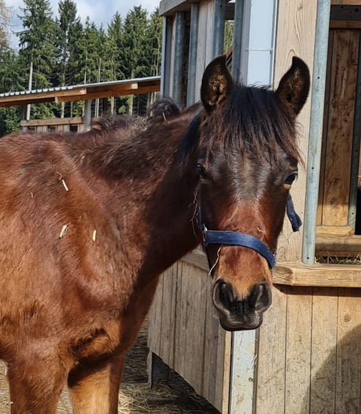 Snickers to uroczy, ciekawski wałach. Zna abecadło źrebiąt, kowala i weterynarza. Swoje pierwsze życie spędził z pięcioma innymi źrebiętami i teraz jest gotowy na swojego człowieka, który go pokocha i wesprze w rozwoju.