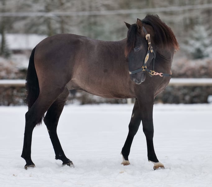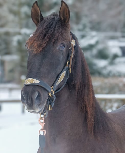 Name: Bravo Aran Breed: P.R.E. (Pure Spanish Horse) Gender: Gelding Date of Birth: January 1, 2023 Age: 3 years Height: 15.6 hh Color: Dark Chocolate Brown Pedigree: With pedigree Temperament: Friendly and people-oriented, eager to learn, reliable, patient, curious, intelligent, brave, calm Training/ suitability: Lunged, suitable for leisure riding, dressage, baroque riding, working equitation Trail Experience: Trustworthy, fearless, resilient, good in groups Health: Dewormed, vaccinated, barefoot, eczema-free, teeth checked, osteopathically treated Stabling: Box stall, paddock Special Features: Good basic gaits, stands well for farrier and loading, herd-compatible Please note that the above characteristics are based on our personal assessment and do not constitute a guarantee. Price: €7,900 (gross) Have we piqued your interest? To give you a better impression of Bravo Aran, we would be happy to send you a video of him riding. Of course, we are available for a detailed description of the horse, personal consultation, and to answer any questions you may have, also by phone. Feel free to contact us anytime via WhatsApp or call us at: +49 151 19487595 Our phone hours are daily from 7:00 AM to 1:30 PM and again from 8:00 PM. We look forward to hearing from you! A clinical or radiological pre-purchase examination can be carried out by your veterinarian of choice. Bravo Aran can be safely and comfortably delivered to his new home. We will handle all necessary preparations and transportation so that your new horse arrives stress-free, well-cared-for, insured, and in good health. Currently, we offer a carefully selected range of sale horses. With us, you are sure to find your dream horse. Feel free to visit our website at: www.marvinsroyalhorses.de Dear customers, we are happy to introduce you to our horses. You are welcome to lead, groom, saddle, longe, do groundwork, or try riding in the riding hall, on the arena, or in the field to get to know your new family member better. The fee is €40 per horse, with each additional horse €30, and will be refunded upon purchase. Our address: Ferdinand Grube 50 53577 Neustadt-Wied Google Maps: marvinsroyalhorses