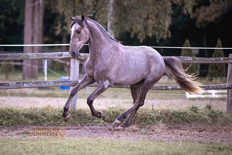 What a wonderful PRE gelding! Our ✨MAXIMO LM✨ is a truly exceptional horse! Even at his young age, he presents an incredibly impressive picture, showcasing light-footed, expansive, and agile movements. With his harmonious conformation, his beautiful character head, and his kind and very clear gaze, he captivates everyone who sees him. Additionally, this gelding is super sweet, very people-oriented, and absolutely clear-headed. MAXIMO LM is a horse of very special quality and already gives a glimpse of how he will further develop under the rider in the future. He is a dream horse for self-training with a lot of potential for dressage and working equitation. MAXIMO LM is already familiar with free work and responds well on the lunge, always being very alert and eager. The beautiful gray is now waiting in Traventhal for his special person. X-ray images are available. Location: 23795 Traventhal
