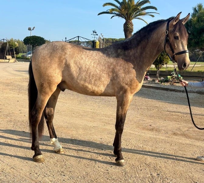 Dieser schicke PRE Wallach sucht nach seinem Herzensmenschen. Charakterlich ist er für sein Alter dem Menschen sehr zugewandt, neugierig, höflich und immer respektvoll.. Er wird dieses Jahr 3 Jahre alt und ist aktuell ca. 1,61 m groß. Ausgewachsen schätzen wir ihn auf ca. 1,63-1,65 m. Er kommt frisch aus seiner Junghengstherde und lernt gerade das Fohlen ABC. In Zukunft können wir ihn uns in vielen Bereichen vorstellen, sowohl in der Dressur, für Working-Equitation, für die Show, in der Zucht oder einfach als Freizeitpartner. Seine Kindheit konnte er in einer großen Herde aus Stuten und ihren Fohlen auf der Weide verbringen und mit ca. 8 Monaten wurde er von seiner Mutter getrennt und konnte sich in einer Junghengstherde ausleben. Nun wurde er eingestallt, sodass er die Box auch schon kennt. Er hat bereits Röntgenbilder ohne Befund. Standort: Barcelona, Spanien, ein Kennenlernen in Spanien und der Transport kann problemlos organisiert werden