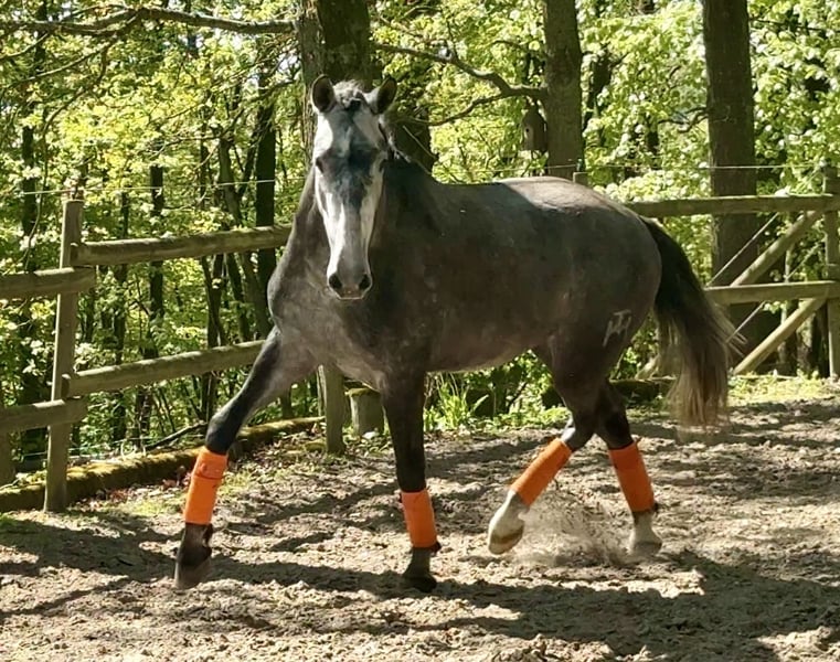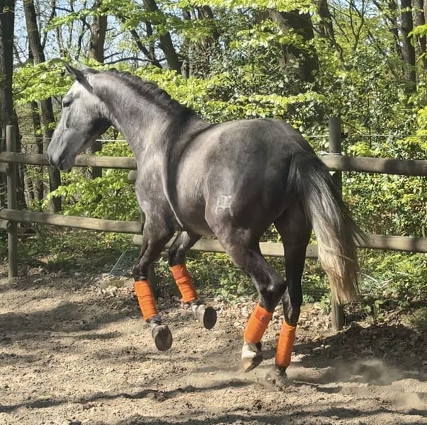 Super Nachwuchspferd, großer, reinrassiger PRE (ANCCE) sucht neuen Wirkungskreis. Der Hübsche kommt daher mit einem Herz aus Gold, aktiven Bewegungen und toller Arbeitseinstellung. Er ist nun 3 jährig und bereit für seine zukünftigen Aufgaben für ambitionierte Reiter. Er kennt die Arbeit an der Longe, Trense, Sattel, Hufschmied, Hänger und macht alles sehr artig mit. Er ist ein wirklich ganz feines, edles Pferd, immer lieb und achtsam. Er ist der perfekte Wegbegleiter für eine liebevolle Person, die ihr Pferd gerne selbst aus- und weiterbildet. Gorrión de Millan wird ein Endstockmaß um die 1,70 m erreichen. Er stammt direkt aus der bekannten Zucht Yeguada Millán Herce und kam als Jährling zu uns. Weitere Infos bei ernsthaftem Interesse gebe ich gerne (mobil: 015739472600) Sein Preis steigt mit weiterer Ausbildung.