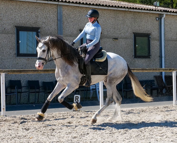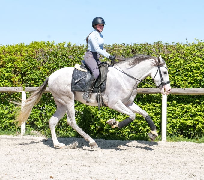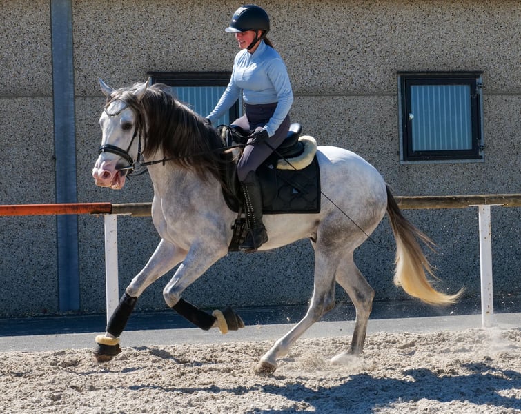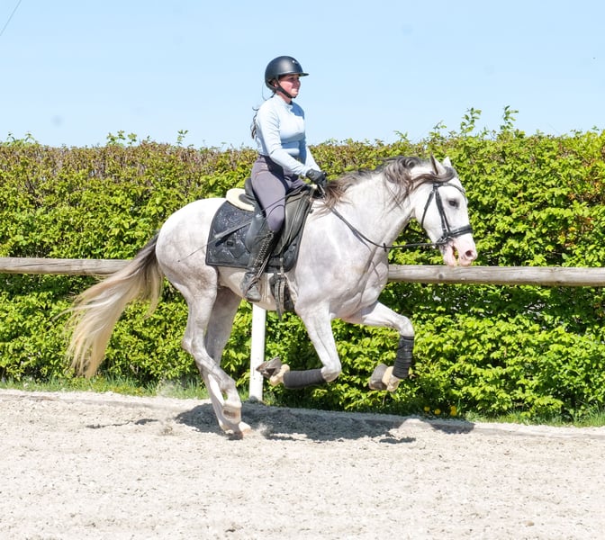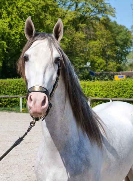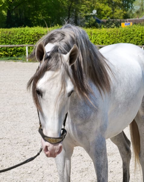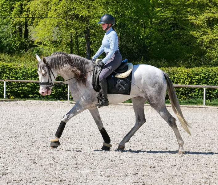Name: Dolar De Vergis Rasse: P.R.E Geschlecht: Wallach Geburtsdatum: 04.07.2022 Alter: 4 Stockmaß: 1.58m Farbe: Schimmel Abstammung: mit Abstammungsnachweis Charakter: menschenbezogen, lernwillig, verlässlich, neugierig, intelligent, mutig, gelassen Ausbildung/Eignung: geritten, Freizeit, Dressur, Barock, Working Equitation, für Kinder geeignet Geländeerfahrung: unerschrocken, nervenstark, zuverlässig, alleine und in der Gruppe Gesundheit: entwurmt, geimpft, Barhufer, ekzemfrei, Zähne kontrolliert, osteopathisch behandelt Haltung: Box, Paddock Besonderheiten: gute Grundgangarten, sehr sitzbequem, schmiede und verladefromm, herdenverträglich Die genannten Eigenschaften beruhen auf unserer persönlichen Einschätzung und stellen keine zugesicherten Merkmale dar. Preis: 8900€ (Bruttopreis) Haben wir ihr Interesse geweckt? Um Ihnen einen besseren Eindruck von Dolar zu geben, senden wir Ihnen sehr gerne sein Reitvideo zu. Selbstverständlich stehen wir Ihnen für eine ausführliche Beschreibung des Pferdes, persönliche Beratung und zur Beantwortung aller Ihrer Fragen auch telefonisch zur Verfügung. Bitte schreiben Sie uns hierfür jederzeit eine WhatsApp Nachricht, oder rufen unter folgender Telefonnummer an: +49 15119487595 Unsere Telefonzeiten sind täglich von 7:00 - 13:30 sowie ab 20:00Uhr. Wir freuen uns über Ihre Kontaktaufnahme! Eine klinische oder Röntgenologische Ankaufsuntersuchung kann gerne vom Tierarzt Ihrer Wahl durchgeführt werden. Natürlich kann Dolar sicher und komfortabel in sein neues Zuhause geliefert werden. Wir kümmern uns um alle notwendigen Vorbereitungen und den Transport, damit Ihr neues Pferd stressfrei, gut betreut, versichert und wohlbehalten im neuen Zuhause ankommt. Zurzeit präsentieren wir eine sorgfältig ausgewählte Vielfalt an Verkaufspferden. Bei uns finden Sie garantiert Ihr Traumpferd. Besuchen Sie uns auch gerne auf unserer Homepage unter: www.marvinsroyalhorses.de. Sehr geehrte Kunden, gerne stellen wir Ihnen unsere Pferde vor und führen, putzen, satteln, longieren, Bodenarbeit sowie Probereiten in der Reithalle, auf dem Platz oder im Gelände ist Ihnen möglich, um Ihr neues Familienmitglied näher kennenzulernen. Dieses kostet für ein Pferd 40€, für jedes weitere 30€ und wird beim Kauf wieder erstattet. Unsere Adresse lautet: Grube Ferdinand 50 53577 Neustadt Wied Google Maps: marvinsroyalhorses