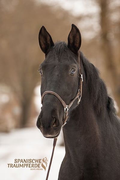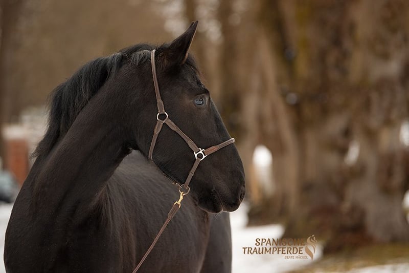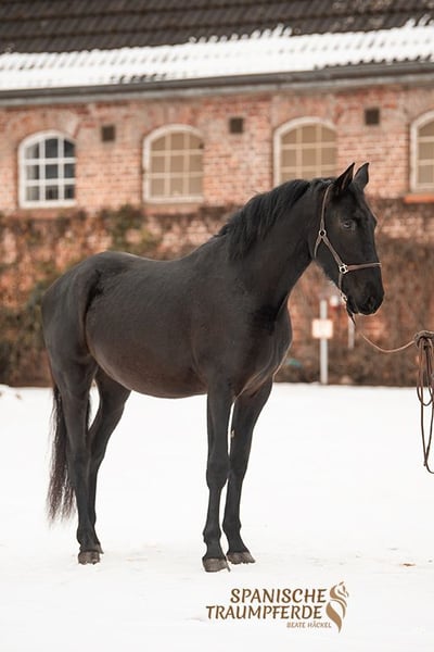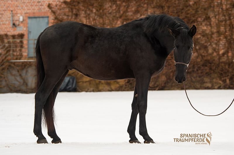 Du hast schon immer von einem lackschwarzen Pferd geträumt? Dann kannst du dir jetzt diesen Traum erfüllen, mit unserem schönen 3,5jährigen Rapp-Wallach✨SIRIUS SH✨. Dieser wundervolle PRE-Wallach glänzt mit seinem schwarzen Fell in der Sonne wie eingeölt. Aber nicht nur durch seine auffällige Fellfarbe ist dieses Pferd etwas Besonderes. Auch sein lieber und sehr höflicher Charakter machen ihn zu etwas Besonderem. Dazu kommt sein barockes Exterieur verbunden mit einem wunderbaren und raumgreifenden Bewegungsablauf, welcher ihn zu einem komfortablen Reitpferd werden lässt. Derzeit wird unser schöner Rappe aufgrund seines jungen Alters hauptsächlich über Bodenarbeit an sein zukünftiges Reitpferdeleben herangeführt. Sattel und Reitergewicht hat er kennen gelernt. Unter dem Reiter läuft SIRIUS fein in den Grundgangarten und gibt seinem Reiter bereits jetzt, am Beginn seiner reiterlichen Ausbildung, ein gutes und sicheres Gefühl. SIRIUS SH ist kein Draufgänger. Er ist sehr fein, etwas vorsichtig und man muss sein Herz erobern. Aber wenn man dieses Zauberpferd erst einmal für sich gewonnen hat, dann öffnet er auch sein großes Herz und man hat einen Freund für 's Leben. Videos sind auf meiner Homepage zu finden: www.spanische-traumpferde.de Gerne kann dieses wundervolle Pferd persönlich kennengelernt werden. Eine vorherige Terminabsprache wäre wünschenswert. Für diesen Termin nehmen wir uns ausreichend Zeit und erheben zum Schutz unserer Pferde eine Pauschale von 50,-€. Videos sind auf meiner Homepage zu finden: www.spanische-traumpferde.de Röntgenbilder liegen vor. Standort: 23795 Traventhal
