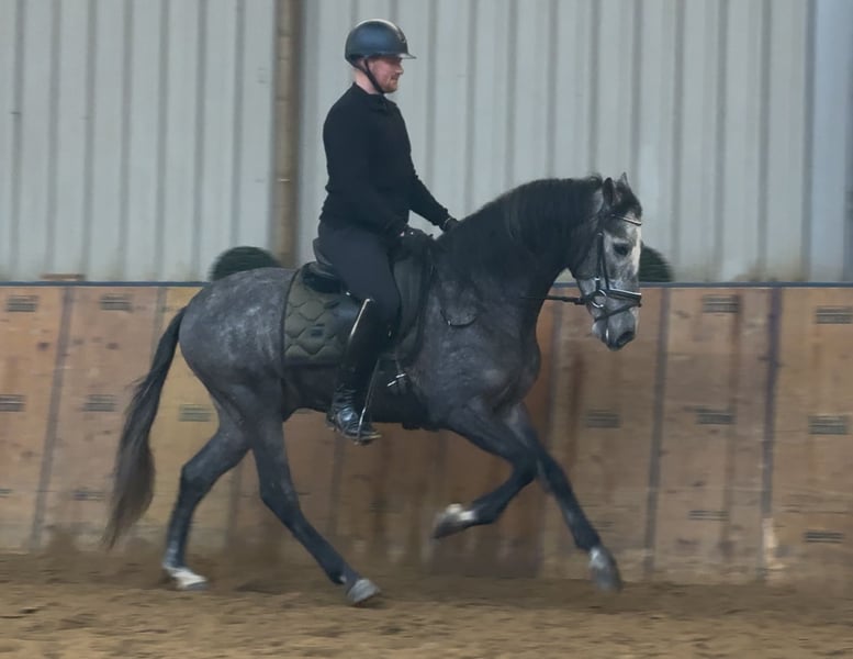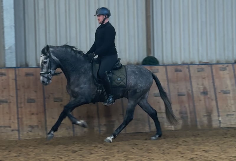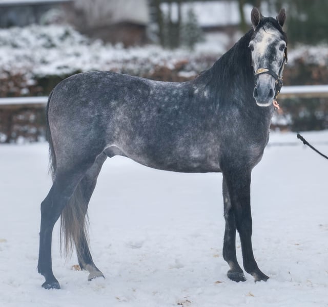 Name: Keiro EP Rasse: P.R.E Geschlecht: Wallach Geburtsdatum: 21.02.2021 Alter: 5 Stockmaß: 1.55m Farbe: Blauschimmel Abstammung: mit Abstammungsnachweis Charakter: menschenbezogen, verlässlich, geduldig, neugierig, intelligent, mutig, gelassen Ausbildung/Eignung: geritten, Freizeit, Dressur, Barock, Working Equitataion Geländeerfahrung: zuverlässig, unerschrocken, nervenstark, alleine und in der Gruppe Gesundheit: entwurmt, geimpft, Barhufer, ekzemfrei, Zähne kontrolliert, ostheopatisch behandelt Haltung: Box, Paddock Besonderheiten: sehr sitzbequem, gute Grundgangarten, schmiede und verladefromm, herdenverträglich Die genannten Eigenschaften beruhen auf unserer persönlichen Einschätzung und stellen keine zugesicherten Merkmale dar. Preis: 8900€ (Bruttopreis) Haben wir ihr Interesse geweckt? Um Ihnen einen besseren Eindruck von Keiro zu geben, senden wir Ihnen sehr gerne sein Reitvideo zu. Selbstverständlich stehen wir Ihnen für eine ausführliche Beschreibung des Pferdes, persönliche Beratung und zur Beantwortung aller Ihrer Fragen auch telefonisch zur Verfügung. Bitte schreiben Sie uns hierfür jederzeit eine WhatsApp Nachricht, oder rufen unter folgender Telefonnummer an: +49 15119487595 Unsere Telefonzeiten sind täglich von 7:00 - 13:30 sowie ab 20:00Uhr. Wir freuen uns über Ihre Kontaktaufnahme! Eine klinische oder Röntgenologische Ankaufsuntersuchung kann gerne vom Tierarzt Ihrer Wahl durchgeführt werden. Natürlich kann Keiro sicher und komfortabel in sein neues Zuhause geliefert werden. Wir kümmern uns um alle notwendigen Vorbereitungen und den Transport, damit Ihr neues Pferd stressfrei, gut betreut, versichert und wohlbehalten im neuen Zuhause ankommt. Zurzeit präsentieren wir eine sorgfältig ausgewählte Vielfalt an Verkaufspferden. Bei uns finden Sie garantiert Ihr Traumpferd. Besuchen Sie uns auch gerne auf unserer Homepage unter: www.marvinsroyalhorses.de. Sehr geehrte Kunden, gerne stellen wir Ihnen unsere Pferde vor und führen, putzen, satteln, longieren, Bodenarbeit sowie Probereiten in der Reithalle, auf dem Platz oder im Gelände ist Ihnen möglich, um Ihr neues Familienmitglied näher kennenzulernen. Dieses kostet für ein Pferd 40€, für jedes weitere 30€ und wird beim Kauf wieder erstattet. Unsere Adresse lautet: Grube Ferdinand 50 53577 Neustadt Wied Google Maps: marvinsroyalhorses
