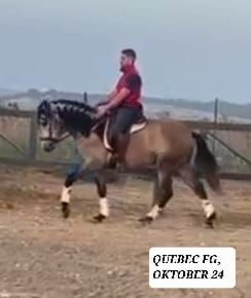 Verkaufe PRE Wallach – Buckskin, 156 cm, geb. 12.04.21, ideal für Working Equitation Zum Verkauf steht ein wunderschöner PRE Wallach in beeindruckender Buckskin-Farbe. Mit einem Stockmaß von 156 cm ist er perfekt für Reiter, die ein quirliges, sensibles und reaktionsfreudiges Pferd suchen. Geboren im Jahr 2021 ist er sowohl körperlich als auch geistig noch in voller Entwicklung. Er braucht sehr lange, bis er seinem Menschen vertraut, sich an die Umgebung gewöhnt und Nähe zulässt. Hat man sein Herz gewonnen ist er bereit, mit seinem Menschen zu arbeiten. Er kennt Bodenarbeit, Stangen, Pylonen, Parelli Elemente und liebt lange Spaziergänge. In Spanien wurde er an Sattel, Trense und Reitergewicht gewöhnt. Ich habe ihn hier jedoch aufgrund seines Charakters vom Boden gearbeitet und mit Sattel und Trense logiert, sowie zwei dreimal drauf gesessen. Er wartet nun darauf ins Reitleben entlassen zu werden und sucht einen konsequenten sensiblen Reiter….. Bei Interesse und für weitere Informationen stehe ich gerne zur Verfügung