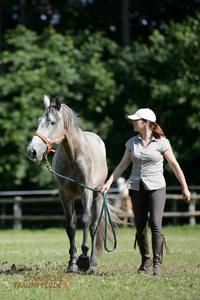 RAPOSO SH ist ein liebevoller, sportlicher PRE-Wallach, der bereit ist, von Traventhal aus sein Menschenherz zu erobern. Der sportliche Schimmel Wallach ist ein liebevolles, zugängliches Pferd mit sehr guten, leichtfüßigen Bewegungen und einem harmonischen Exterieur. RAPOSO ist angenehm gelassen und unerschrocken, dennoch interessiert und lernbereit. RAPOSO zeigt einem sofort, dass er in seinem bisherigen Leben keine schlechten Erfahrungen machen musste. Liegt er z.B. schlafend in seiner Box, kann man sich zu Ihm setzen, er bleibt vertrauensvoll liegen und lässt sich kraulen. RAPOSO kennt den Sattel und das Reitergewicht und benimmt sich unter dem Reiter vorbildlich. Derzeit wird der liebe Schimmelwallach hauptsächlich über akademische Bodenarbeit auf sein Leben als Reitpferd vorbereitet. Wer auf der Suche nach einem liebevollen, unerschrockenen, sportbetonten spanischen Pferd ist, hat mit RAPOSO das richtige Pferd gefunden. Videos sind auf meiner Homepage zu finden: www.spanische-traumpferde.de Röntgenbilder liegen vor. Standort: 23795 Traventhal Ein Kennenlernen unseres RAPOSO ist nach Terminabsprache nahezu jederzeit möglich. Für diesen Termin nehmen wir zum Schutz unserer Pferde eine Pauschale von 50,-