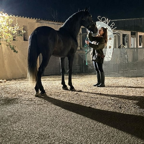 🇬🇧 English Modern, athletic PRE gelding with excellent size (approx. 1.72m / 17hh), strong presence and very correct conformation. Currently in regular professional training and correctly started under saddle. Shows natural balance, clear rhythm and elasticity in all three gaits. Maintains a soft, steady contact and demonstrates a willing, focused and cooperative attitude towards work. Preparing for 5-year-old young horse classes with very promising development for dressage. Combines size, quality and rideability — an attractive prospect for ambitious amateurs or professionals looking for a competitive PRE with modern type. ✔ Easy in daily handling ✔ Good manners ✔ Sound and correct ✔ No stable vices ✔ Up to date with farrier, vaccinations and care Located in Palma de Mallorca, Spain. Viewings and vet checks welcome. Worldwide transport can be arranged. 🇪🇸 Español de 5 años, castrado, con carta ANCCE. Hijo de FER POCHOLO. Ejemplar moderno, con excelente talla (1,72 m aprox.), buena conformación y fuerte presencia. Actualmente en trabajo regular e iniciado correctamente en doma. Muestra buen equilibrio natural, ritmo, elasticidad y calidad en los tres aires. Mantiene contacto suave y constante y presenta una actitud dispuesta y seria hacia el trabajo. En preparación para competir en Pruebas de Caballos Jóvenes de 5 años, con muy buenas perspectivas para la doma clásica. A pesar de su edad es un caballo sensato, fácil de montar y de manejo diario. Ideal como proyecto de doma, para concursos de caballos jóvenes o para jinete amateur ambicioso que busque tamaño, calidad y buen temperamento en un PRE. ✔ Fácil en el manejo diario ✔ Buen carácter ✔ Sano, sin vicios ✔ Al día de herrador y cuidados Ubicado en Palma de Mallorca. Posibilidad de ver y montar sin ningún compromiso. Transporte disponible.
