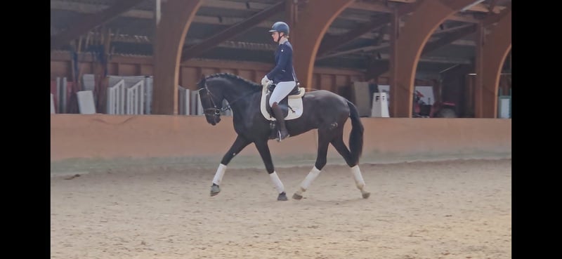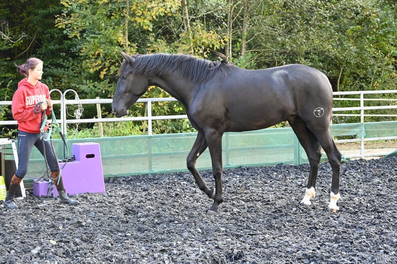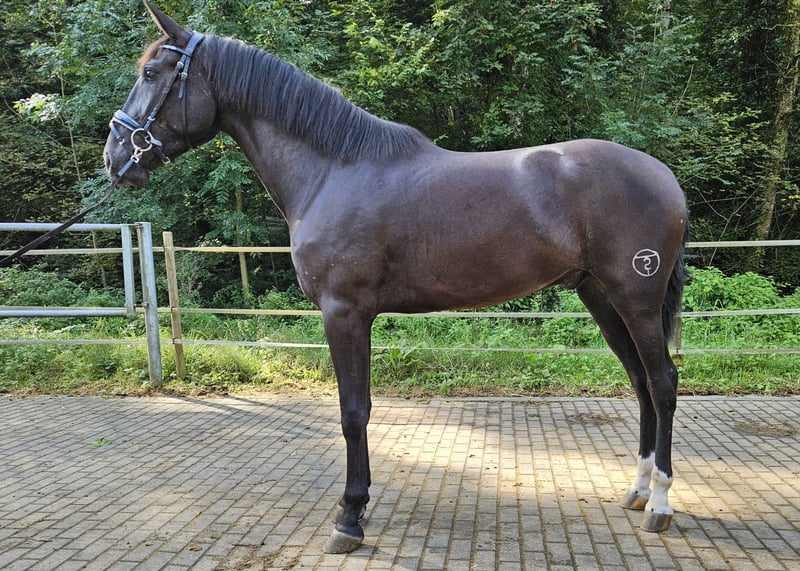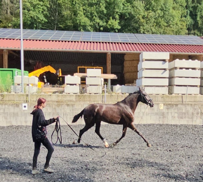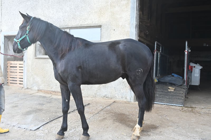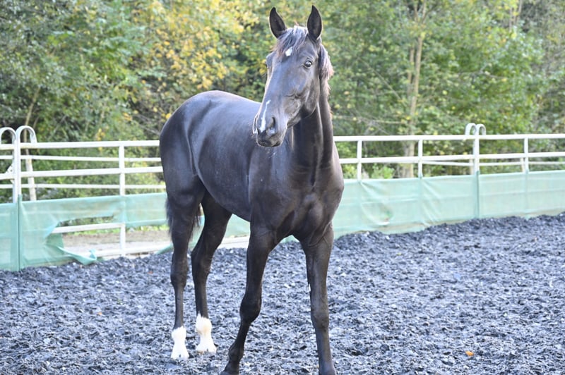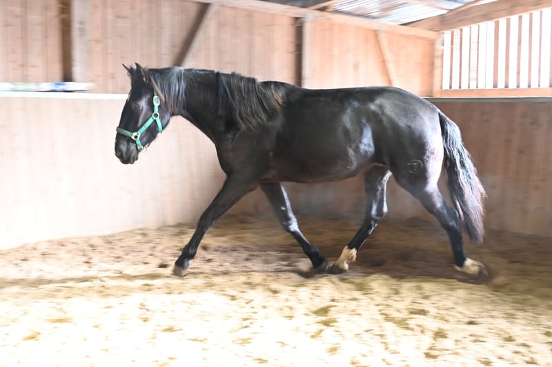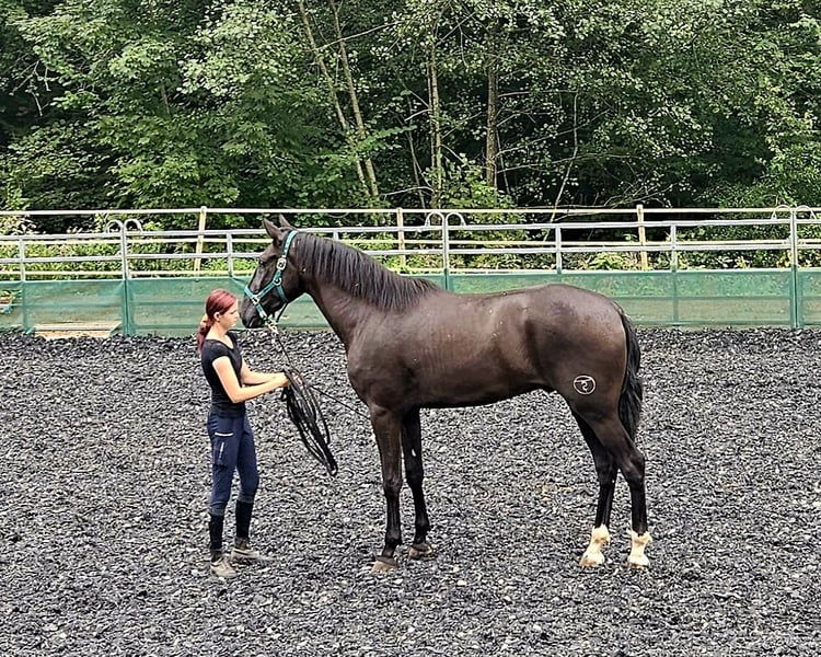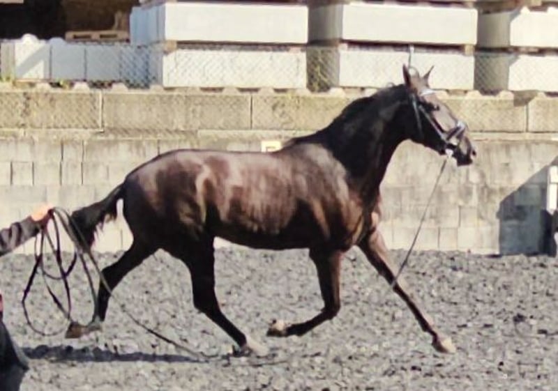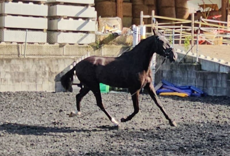 Decano is a very friendly and relaxed, tall PRE black gelding. His current height is approx. 173cm. At 3 years old, Decano is not yet fully grown. He comes from a performance breeding, two half-brothers of him who were born in the same breeder are successful in dressage in the USA. He was gelded in March 2024. Decano has been lunged and knows the accessories. He is farrier and loader friendly. He is calm and gentle to handle. He is regularly vaccinated and wormed. His dam was called Duquesa CCLXXXIV and descended from Trajano. Sire Genio GM, dam: Trajano