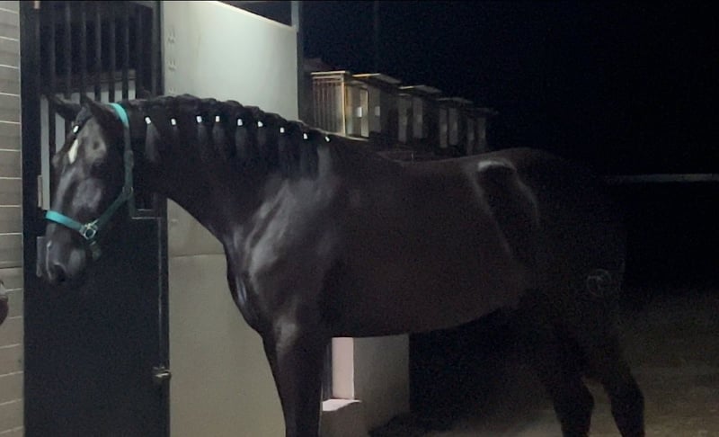 Decano es un PRE castrado negro, muy simpático y relajado. Su alzada actual es de aproximadamente 173 cm. A los 3 años, Decano aún no ha crecido del todo. Proviene de un programa de cría de rendimiento, dos de sus hermanastros nacidos en el mismo criador son caballos de doma con éxito en los EE.UU.. Fue castrado en marzo de 2024. Decano ha sido colgado y conoce los accesorios. Es fácil de herrar y cargar. Es tranquilo y suave de manejar. Esta vacunado y desparasitado regularmente. Su madre se llama Duquesa CCLXXXIV y desciende de Trajano. Padre Genio GM, madre: Trajano