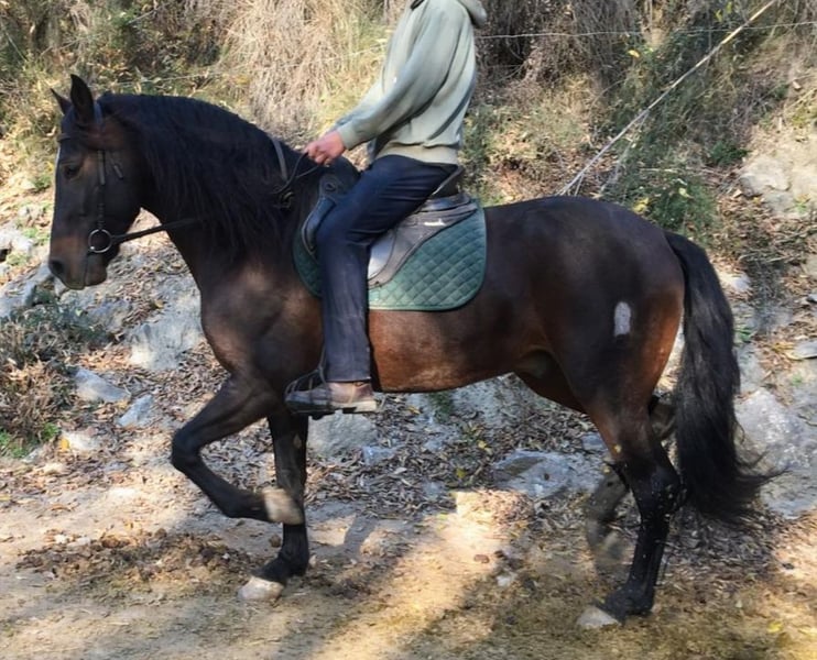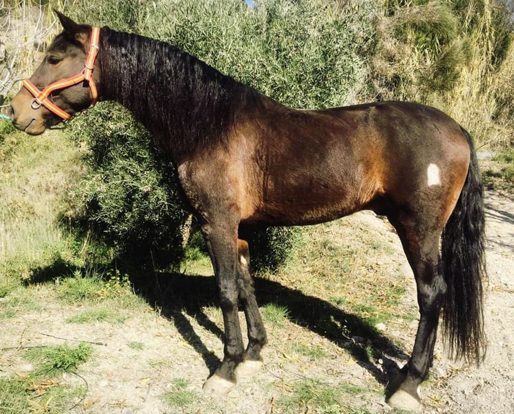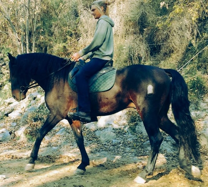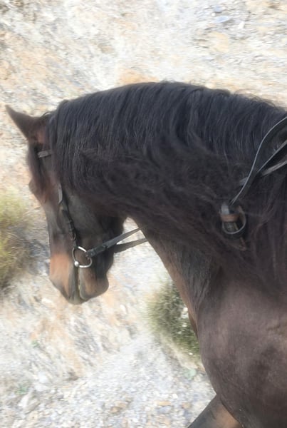 Jaleo is een prachtige PRE-ruin uit 2020. Hij komt uit een uitstekende fokkerij (vaderlijn CAMPANA), en zijn vader Nabijero XI en meerdere broers en zussen nemen deel aan evenementen en paardenshows door heel Spanje. Zijn moeder, Jalea XLIX, komt uit de gerenommeerde Bohorquez-lijnen. Hij is slechts uitgesloten vanwege zijn kleur (zijn fokkers willen alleen schimmels). Met zijn elegante uitstraling, prachtige lange manen en zijn evenwichtige karakter is hij een echte blikvanger. Hij heeft een ideale hoogte van ongeveer 166 cm en is uitstekend geschikt voor de dressuur. Hoewel hij nog niet lang onder het zadel loopt, toont hij nu al indrukwekkende aanleg. Naast zijn expressieve gangen is hij ook zeer gevoelig aan de hulpen (bereden met een eenvoudige watertrense) en heeft hij een fijn "Go". Hij overtuigt door zijn goede bewegingskwaliteit, leergierigheid en vriendelijke aard. Ideaal voor ambitieuze ruiters die op zoek zijn naar een betrouwbaar en talentvol paard. Natuurlijk is hij, gezien zijn leeftijd, nog niet volledig opgeleid, maar alle basisvaardigheden zijn aanwezig om van hem een echt toppaard te maken. Jaleo woont bij mij, aan de voet van de Sierra Nevada (Granada), op meer dan 1000 meter hoogte in een open stal. Hij is daardoor zeer robuust, zowel tegen hitte als kou. Hij is ook gewend om af en toe in de box te staan. Ik doe hem momenteel voor een prijs ver onder de marktwaarde weg, omdat wij binnenkort gaan verhuizen. Bij interesse of voor meer informatie sta ik u graag te woord.