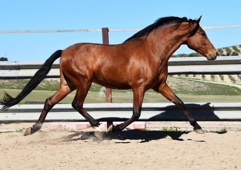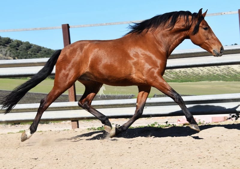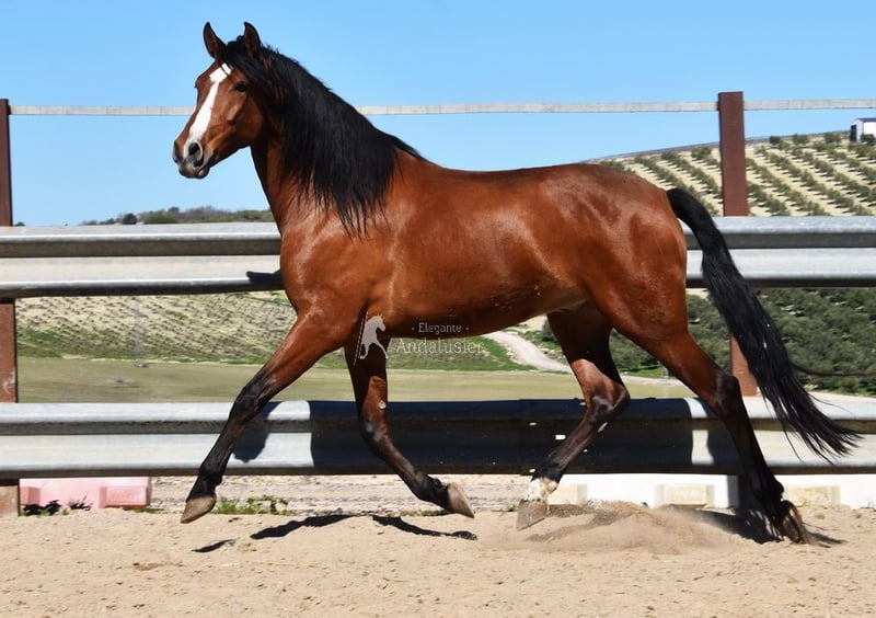Carattere amabile, curioso, montato ai passo, alto, buone andature e genealogia di qualità. Genealogia: Escalera, Yeguada Militar. Il nonno Obcecado è qualificato. www.elegante-andalusier.com