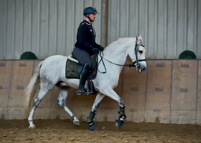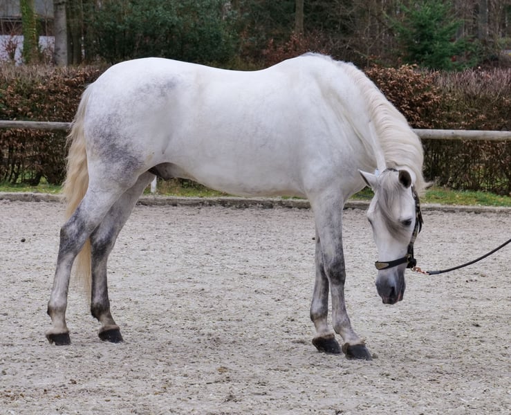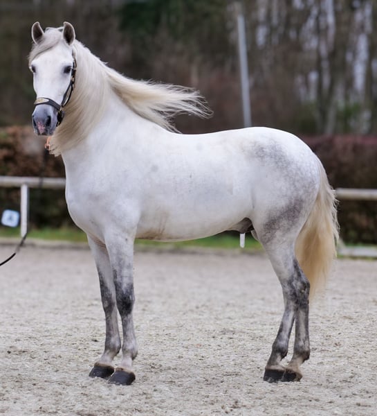 Name: Brillante LXXXI Rasse: P.R.E Geschlecht: Wallach Geburtsdatum: 02.09.2019 Alter: 6 Stockmaß: 1.55m Farbe: Schimmel Abstammung: mit Abstammungsnachweis Charakter: menschenbezogen, lernwillig, verlässlich, geduldig, neugierig, intelligent, mutig, gelassen Ausbildung/Eignung: geritten, Dressur, Freizeit, Barock, Working Equitation Geländeerfahrung: zuverlässig, unerschrocken, nervenstark, alleine und in der Gruppe, Geländeprofi Gesundheit: entwurmt, geimpft, Barhufer, ekzemfrei, Zähne kontrolliert, ostheopatisch behandelt Haltung: Box, Offenstall Besonderheiten: gute Grundgangarten, schmiede und verladefromm, herdenverträglich Die genannten Eigenschaften beruhen auf unserer persönlichen Einschätzung und stellen keine zugesicherten Merkmale dar. Preis: 8900€ (Bruttopreis) Haben wir ihr Interesse geweckt? Um Ihnen einen besseren Eindruck von Brillante zu geben, senden wir Ihnen sehr gerne sein Reitvideo zu. Selbstverständlich stehen wir Ihnen für eine ausführliche Beschreibung des Pferdes, persönliche Beratung und zur Beantwortung aller Ihrer Fragen auch telefonisch zur Verfügung. Bitte schreiben Sie uns hierfür jederzeit eine WhatsApp Nachricht, oder rufen unter folgender Telefonnummer an: +49 15119487595 Unsere Telefonzeiten sind täglich von 7:00 - 13:30 sowie ab 20:00Uhr. Wir freuen uns über Ihre Kontaktaufnahme! Eine klinische oder Röntgenologische Ankaufsuntersuchung kann gerne vom Tierarzt Ihrer Wahl durchgeführt werden. Natürlich kann Brillante sicher und komfortabel in sein neues Zuhause geliefert werden. Wir kümmern uns um alle notwendigen Vorbereitungen und den Transport, damit Ihr neues Pferd stressfrei, gut betreut, versichert und wohlbehalten im neuen Zuhause ankommt. Zurzeit präsentieren wir eine sorgfältig ausgewählte Vielfalt an Verkaufspferden. Bei uns finden Sie garantiert Ihr Traumpferd. Besuchen Sie uns auch gerne auf unserer Homepage unter: www.marvinsroyalhorses.de. Sehr geehrte Kunden, gerne stellen wir Ihnen unsere Pferde vor und führen, putzen, satteln, longieren, Bodenarbeit sowie Probereiten in der Reithalle, auf dem Platz oder im Gelände ist Ihnen möglich, um Ihr neues Familienmitglied näher kennenzulernen. Dieses kostet für ein Pferd 40€, für jedes weitere 30€ und wird beim Kauf wieder erstattet. Unsere Adresse lautet: Grube Ferdinand 50 53577 Neustadt Wied Google Maps: marvinsroyalhorses