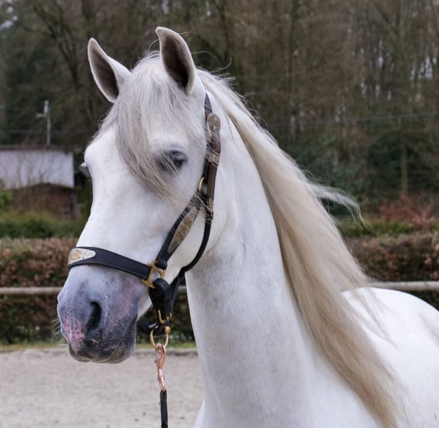Naam: Brillante LXXXI Ras: P.R.E. (Pure Spanish Horse) Geslacht: Ruin Geboortedatum: 2 september 2019 Leeftijd: 6 jaar Schofthoogte: 1,55 m Kleur: Grijs Afstamming: met stamboekbewijs Karakter: mensgericht, leergierig, betrouwbaar, geduldig, nieuwsgierig, intelligent, moedig, rustig Opleiding/geschiktheid: gereden, dressuur, recreatie, barok, working equitation Bodemervaring: betrouwbaar, onbevreesd, zenuwsterk, solo en in groep, ervaren in het terrein Gezondheid: ontwormd, gevaccineerd, barokke bouw, eczeemvrij, tanden gecontroleerd, osteopathisch behandeld Houding: box, open stal Bijzondere kenmerken: goede basisgangen, schoei- en laadvaardig, herdverträglich De genoemde eigenschappen zijn gebaseerd op onze persoonlijke beoordeling en vormen geen garantie. Prijs: €8.900 (bruto prijs) Heeft u interesse? Om u een beter beeld van Brillante te geven, sturen wij u graag zijn rijvideo toe. Natuurlijk staan wij klaar voor een uitgebreide beschrijving van het paard, persoonlijk advies en het beantwoorden van al uw vragen, ook telefonisch. U kunt ons te allen tijde een WhatsApp-bericht sturen of bellen naar: +49 151 19487595 Onze bereikbaarheid is dagelijks van 07:00 tot 13:30 uur en vanaf 20:00 uur. Wij kijken uit naar uw contact! Een klinisch of röntgenologisch aankooponderzoek kan door uw dierenarts worden uitgevoerd. Brillante kan natuurlijk veilig en comfortabel naar zijn nieuwe thuis worden gebracht. Wij regelen alle voorbereidingen en het transport, zodat uw nieuwe paard stressvrij, goed verzorgd, verzekerd en gezond op zijn nieuwe plek aankomt. Momenteel bieden wij een zorgvuldig geselecteerd assortiment verkooppaarden aan. Bij ons vindt u gegarandeerd uw droompaard. Bezoek ook onze website: www.marvinsroyalhorses.de. Beste klanten, wij stellen onze paarden graag aan u voor en bieden de mogelijkheid tot longeren, poetsen, zadelen, grondwerk en proefritten in de rijhal, op de buitenbak of in het terrein, zodat u uw nieuwe familielid beter leert kennen. Dit kost €40 per paard, en voor elk extra paard €30. Bij aankoop wordt dit bedrag vergoed.