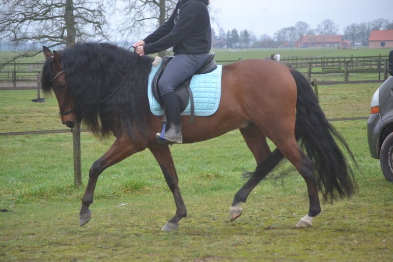 Zeer knappe pre ruin van 6 jaar en 1,58 hoog. Hij is braaf en geduldig in de omgang heeft echt mega lange manen en een dikke staart. Het is een sprookje om te zien en een feestje om mee te rijden. Hij heeft wedstrijdervaring en is m1 geklasseerd. Voor meer informatie graag appen of bellen naar 0031645719488