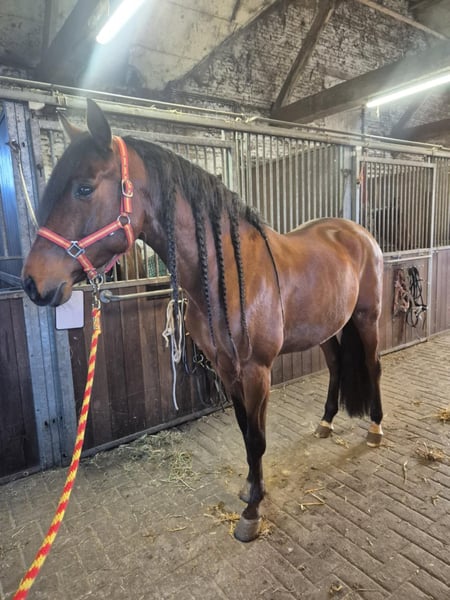 A very handsome 6-year-old pre mare standing at 15.8 hh. She is gentle and patient in handling, with truly stunning, long mane and a thick tail. She is a sight to behold and a joy to ride. She has competition experience and is classified in M1. For more information, please message or call 0031645719488.