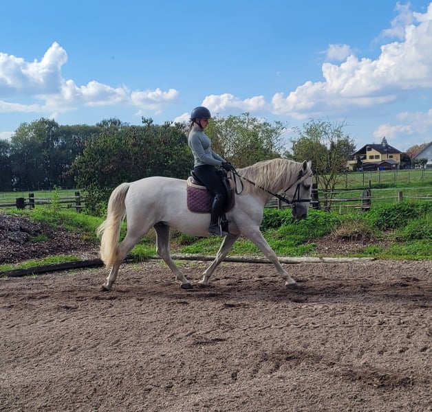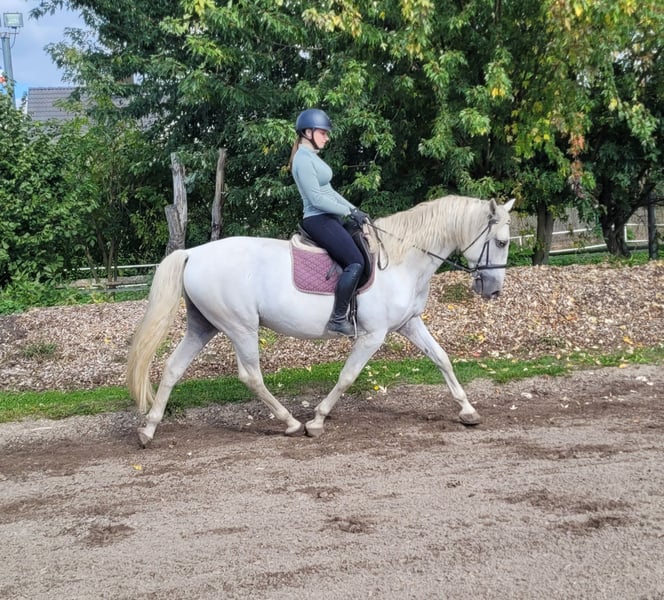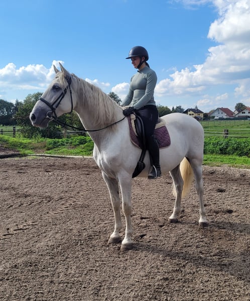 SANTOS is a beautiful, very elegant P.R.E. gray gelding of absolute top class. His God-given calmness and serenity allow even a somewhat insecure rider to quickly gain trust in this magnificent fellow. SANTOS forgives riding mistakes and responds when he senses that his rider is becoming unsure. SANTOS is a horse that literally looks out for his rider. He is very easy to ride and comfortable to sit on. He has three beautiful basic gaits. He is very people-oriented and loves to be pampered. He particularly enjoys working with children and young people. We have not been able to discover anything that could significantly disturb this magnificent fellow's calmness. Whether in the arena, all-weather arena, or on the trail, SANTOS moves forward well, is not lazy, but also not too fast. SANTOS is a horse that adapts to the demands of his rider, who adjusts to his rider. SANTOS embodies the ideal family horse and is also suitable for somewhat insecure riders. Not only under saddle but also during groundwork and in everyday handling, SANTOS provides security with his good-natured temperament and shows his great trust in humans. We can also very well imagine SANTOS as a therapy horse or as a teacher in a riding school. A horse that does not present its person with new challenges every day. For more information about our horses and our work, please contact 0171/5269002 Hubert Seitle and 0151/12775701 Uta Großmann. General information about our horses and our work can also be found at www.ps-seitle.de THERAPY HORSES Horse Sports Seitle in DONAUMOOS