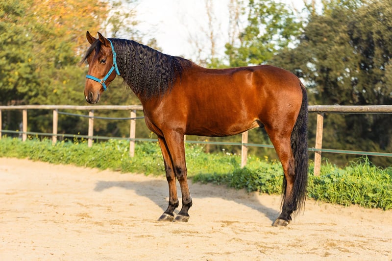 PRE línia deportiva Caballo castrado 1.68cm Sangre caliente Trabajo en doma clásica, muy trabajador Muy acostumbrado a pista y a salir al campo Nada asustadizo Excelente carácter, muy noble y cariñoso Ideal para jóvenes y adultos