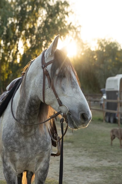 Zeus tiene siete años y fue montado de manera suave y tardía. Está muy bien educado y ha sido trabajado en el suelo, tanto en natural horsemanship como en los primeros enfoques de doma clásica y en trabajo en libertad. Zeus vive en paddock con la manada, tiene un rango alto y se lleva muy bien y de manera justa con los demás. Hace un año, ya participó en un desfile por el pueblo, lo hizo de manera excelente. Por lo demás, trabaja en la pista de doma, pasea y, de vez en cuando, viajamos con él en remolque para montar en otras instalaciones. Es un caballo muy cercano a las personas, noble y con carácter, que requiere ser visto. No es un caballo típico para todos ni un caballo infantil clásico. Ya han montado niños en él, lo cual tanto el caballo como los niños disfrutaron mucho, pero necesita un jinete seguro y sensible como su principal referente. Por lo tanto, no es un caballo para principiantes. También puede ir al campo y lo hace bastante bien, aunque todavía tiene algo de inseguridad en algunos momentos y necesita rutina y un jinete que le transmita confianza. Creemos que tiene grandes posibilidades de convertirse en un fiable y excelente caballo de campo. El caballo realiza todo tipo de movimientos laterales y flexiones, tiene un buen entusiasmo por el trabajo y se esfuerza mucho. Tiene movimientos preciosos, una estructura muy correcta y una buena línea de sangre. Mide aproximadamente 1,62 m. Trabaja con bocado de agua y normalmente con silla de doma o de barroco. Conoce ovejas, ponis, perros, tractores, coches, etc. Es un caballo absolutamente soñando, con el que se puede disfrutar mucho. Sus cascos se mantienen de forma regular, y una vez al año, nuestros caballos son revisados por fisioterapeuta y dentista, con dientes recién arreglados y en perfectas condiciones. Es portador de piroplasmosis, probablemente adquirida por una mordedura de garrapata en la gran reserva natural donde nació y creció. Nunca ha sido tratado, ya que se trata de un hallazgo casual que, por supuesto, informo. Podemos explicar más detalles en una conversación personal. Es un caballo muy resistente y sencillo de mantener. Conoce y acepta la cerca eléctrica y también ha estado en box para acostumbrarse. Podemos entregarlo directamente en su nuevo hogar. Se puede adquirir un sillín adecuado a un precio justo. Tiene un sillín barroco y uno de doma. No se vende en estabulación pura; es imprescindible que tenga acceso a un grupo (o al menos a otro caballo compatible), así como la posibilidad diaria de moverse libremente y recibir buenas manos. Para más información y vídeos, no duden en solicitarlo.