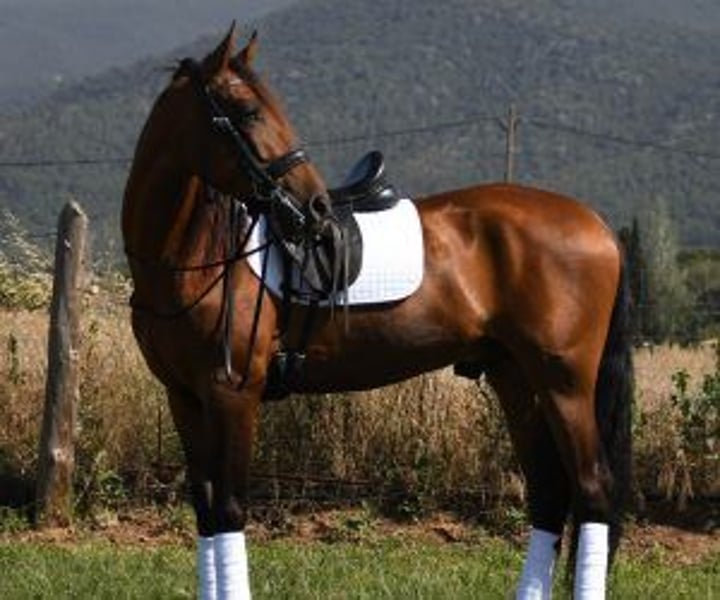 Wallach, gutes Funkgerät, macht fliegende Wechsel, super nett. Wir möchten Ihnen dieses fantastische Pferd vorstellen, das alle unsere Erwartungen übertroffen hat! Er hat gute Röntgenbilder und ist pirofrei, was seine ausgezeichnete Gesundheit und Wettkampffähigkeit garantiert. Dieses Exemplar macht fliegende Wechsel mit Leichtigkeit und begann seine Ausbildung in Piaffe und Pirouette und zeigt eine außergewöhnliche Veranlagung zu lernen und Fortschritte in der klassischen Dressur. Was uns an ihm besonders gefällt, ist seine Leichtigkeit und Sicherheit. Er ist sehr leicht zu versammeln und sehr sicher in allen Situationen, er geht ohne Probleme ins Gelände, sowohl allein als auch in Begleitung anderer Pferde. Er hat keine Angst vor Fahrrädern, Autos oder anderen Ablenkungen, was ihn zu einem perfekten Pferd für entspannte und sichere Ausritte macht. Wenn Sie auf der Suche nach einem vielseitigen Pferd mit guten Bewegungen und einem zuverlässigen Charakter sind, könnte dieser 6-jährige PRE die ideale Wahl für Sie sein. Zögern Sie nicht, uns für weitere Informationen zu kontaktieren oder einen Besuch zu vereinbaren. IberHorse.com : Wir haben es uns zur Aufgabe gemacht, Reiter mit außergewöhnlichen Pferden zusammenzubringen. Wenn dieses Pferd Ihr Interesse geweckt hat und Sie das Potenzial sehen, Ihr nächster großartiger Begleiter zu werden, zögern Sie nicht, uns für weitere Informationen zu kontaktieren oder eine Besichtigung zu vereinbaren. Wir sind hier, um Ihnen zu helfen, das perfekte Pferd für Ihre Bedürfnisse und Ambitionen zu finden.