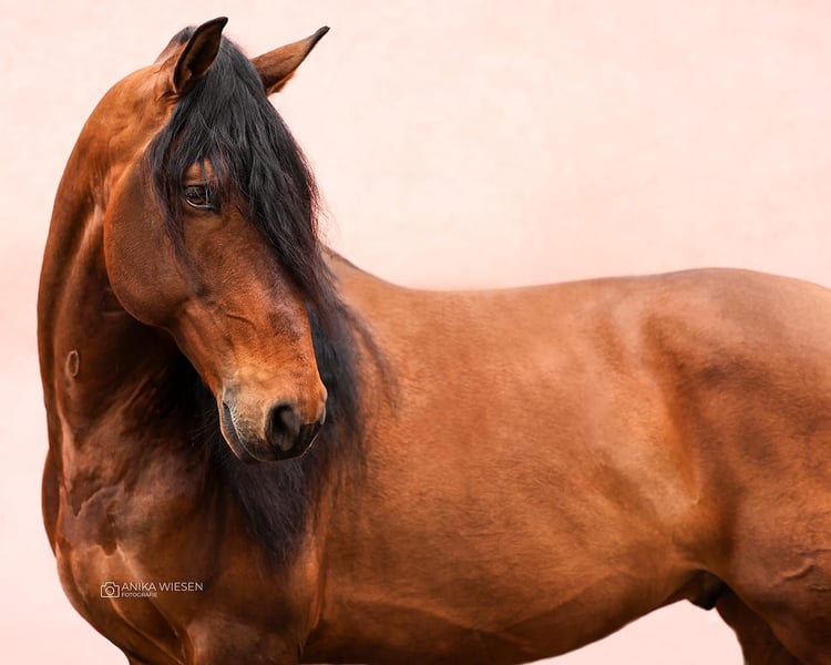 Duende ist ein 8-jähriger Hengst mit einem PSL-Vater und einer PRE-Mutter aus dem berühmten Gestüt „Bohorquez” in Spanien. Was ihn von anderen iberischen Pferden unterscheidet, ist, dass er für den Stierkampf zu Pferd gezüchtet wurde. Er ist elastisch, äußerst aufmerksam, immer ausgeglichen und bereit, Ihre Befehle auszuführen. Er baut eine sehr tiefe Verbindung zu den Menschen um ihn herum auf, er ist eines dieser Pferde, zu denen man eine Bindung aufbauen muss, deshalb braucht er ein Zuhause für immer, in dem er sehr geliebt wird. Duende hat einen außergewöhnlichen Charakter; ein Anfänger kann ihn ohne Probleme reiten und galoppieren (Videos verfügbar). Er ist ruhig auf der Weide, ein Pferd, das alles richtig machen will und bei jedem Ritt 300 % gibt. Training der GP-Übungen in dressur, er hat ein großes Talent für Piaffe, Passage und Verlängerungs- und Versammlungsübungen. Er ist ein Meisterpferd, das Ihnen einfühlsam beibringt, wie man die Hilfen einsetzt, und Ihnen auch Fehler erlaubt. Er ist eher temperamentvoll als faul, aber ohne übermäßig elektrisch zu sein, reagiert schnell auf Hilfen, geht vorwärts und ruft Sie immer, wenn Sie an seinem Stall vorbeigehen. Er ist erst 9 Jahre alt und hat einen außergewöhnlichen Kopf, ein Pferd, das Ihnen viele Jahre Freude bereiten wird. Er ist sehr sanft in der Hand, macht die Übungen mit einer Trense, ist sehr leicht zu handhaben und hat gute Röntgenbilder seines gesamten Körpers. Videos und weitere Informationen auf Anfrage erhältlich.