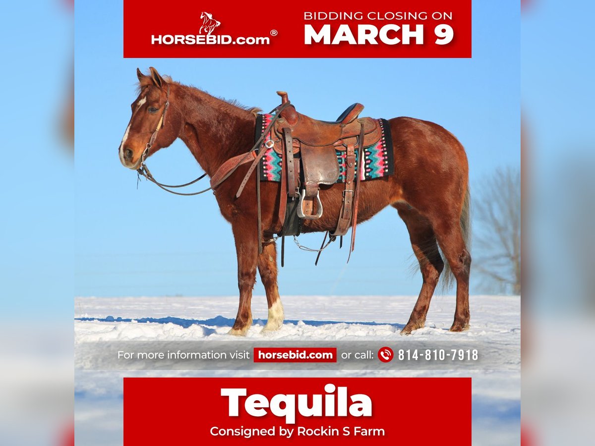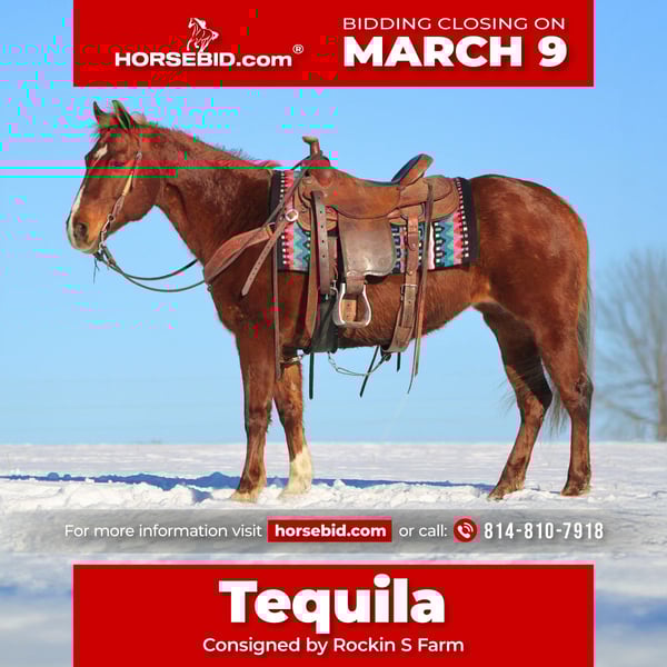 ℳ𝒶𝓇𝒸𝒽 ♦️𝐑𝐈𝐃𝐄𝐑'𝐒 𝐂𝐇𝐎𝐈𝐂𝐄♦️ Happening now thru MONDAY | MARCH 9th - Available EXCLUSIVELY on HorseBid's website! For more details and to register visit: www.Horsebid.com CONSIGNOR CONTACT: Rockin S Farm 814-810-7918 LOCATION: Rebersburg, PA BREED: Quarter pony REGISTERED: No REGISTERED NAME: Tequila COLOR: Sorrel HEIGHT: 14 AGE: 12 GENDER: Mare Here's cool little cow pony that is broke! Tequila is very easy to get along with whether you want to trail ride or go sort cows or do some fun shows, she wants to please you no matter what, she has been there and done that type of horse from youth to adult riders Tequila neckreins sidepasses and has a Smooth walk-trot-canter and knows her correct leads, she rides great in the arena as well as out in the fields or in the mountains. Previously she had been a cutting horse and still loves the job although she loves an afternoon trail riding as well , our 10yr old son can take her anywhere Tequila is the perfect size to jion pony classes yet tall enough for adults to compete on her which makes her a great around horse She is 100% sound and healthy, she does not require any maintenance and can go barefoot or wear shoes (she is currently barefoot), she stands well for the vet and farrier and is up-to-date on on dewormer and has a current coggins and health certificate We are happy to answer any questions you may have regarding Tequila please call Sam @814-810-7918 We are also happy to assist in arranging transportation anywhere in the US