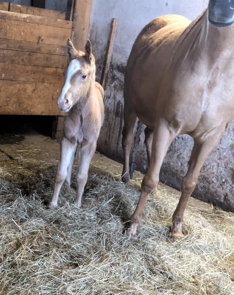 SR Echos Lovely Choice ist eine 1-jährige Quarter Pony Stute geboren 01.01.2025 mit freundlichem, ruhigem Wesen und altersentsprechender Neugier. Sie wächst artgerecht auf, steht tagsüber robust im Offenstall und ist nachts im Winter mit einer Freundin in der Box untergebracht. Sie kennt das Fohlen-ABC (führen, anbinden, Hufe geben, putzen) und ist grundimmunisiert und natürlich regelmäßig entwurmt. Durch den täglichen Umgang sowie den Kontakt zu Artgenossen ist sie sozial gut geprägt. Beide Elterntiere stehen ebenfalls im Stall und können gerne besichtigt werden. Choice besitzt amerikanische Papiere ( Bei Interesse gerne schicke ich Fotos und mehr Infos) Der Verkauf fällt mir sehr schwer und bricht mir das Herz, ist jedoch aus Zeit- und finanziellen Gründen notwendig. Mir ist es sehr wichtig, für Choice ein liebevolles und verantwortungsvolles Zuhause zu finden, idealerweise bei Menschen mit Erfahrung in der Jungpferdehaltung oder in einer passenden Aufzucht. Kein Notverkauf – Abgabe nur in gute Hände. Bei ernsthaftem Interesse freue ich mich über eine Nachricht.