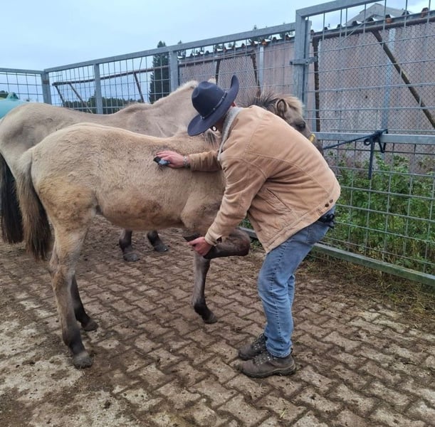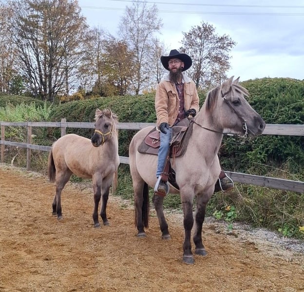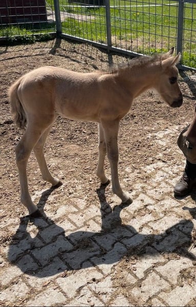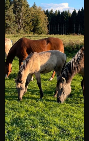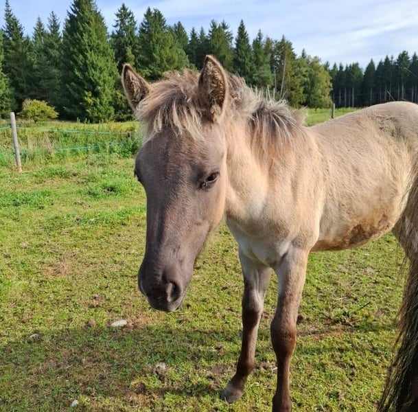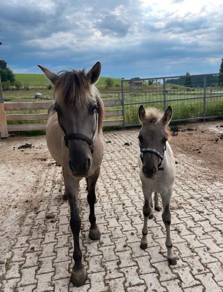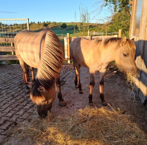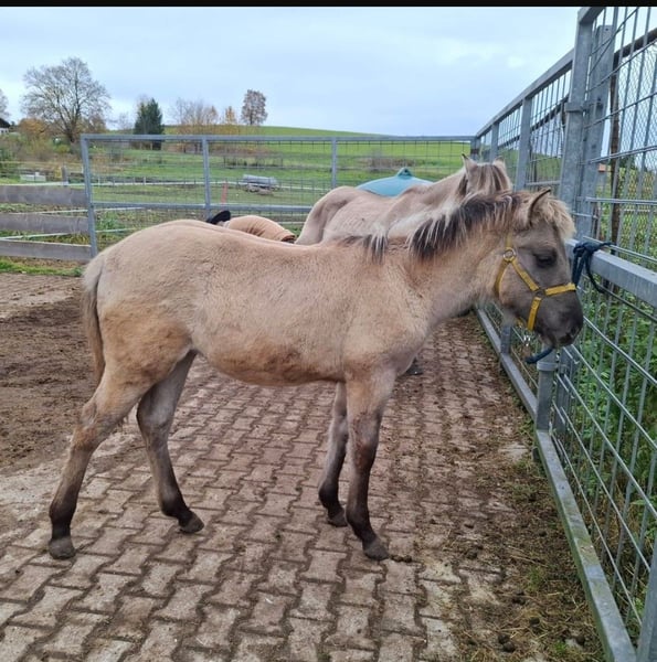 Yona ist am 23.4.25 geboren und ein Mix aus Liebenthaler Wildpferd und Quarter horse. Die Mutter ist ca. 1.43 und der Vater (Quarter) ca. 1.58 . Yona ist eine neugierige , etwas vorsichtige kleine Dame , die wenn man ihr Vertrauen hat mit Sicherheit ein treuer Begleiter wird . Die Mischung aus robust und sportlich spricht für sich . Yona bekommt keine Papiere , lediglich einen grünen Pass. Der ist schon beantragt. Sie wächst robust im Offenstall auf und wird aktuell ans Fohlen ABC heran geführt. Alle weiteren Fragen nur per Telefonat . Ich bitte darum nur bei ernsthaftem Interesse zu schreiben. Ich schalte lediglich die Anzeige und gebe bei Interesse die Nummer des Besitzers weiter.