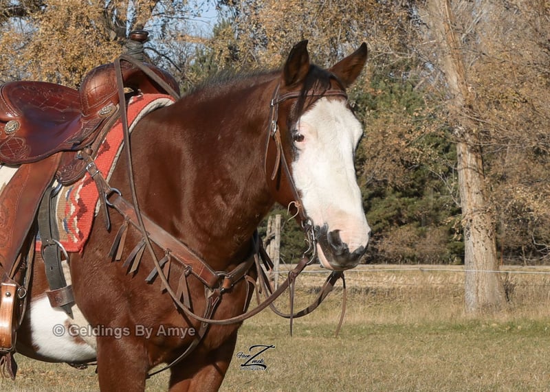 ⚜️ 𝓽𝓱𝓮 𝐇𝐨𝐫𝐬𝐞𝐦𝐚𝐧'𝐬 𝓢𝓱𝓸𝔀𝓬𝓪𝓼𝓮⚜️ Happening now thru MONDAY | DECEMBER 1st - Available EXCLUSIVELY on HorseBid's website! For more details and to register visit: www.Horsebid.com CONSIGNOR CONTACT: Geldings by Amye 308-380-2244 LOCATION: Grand Island, NE BREED: Tobiano Quarter Pony REGISTERED: No REGISTERED NAME: Rubble COLOR: Bay Tobiano HEIGHT: 13.3 AGE: 10 GENDER: Gelding Rubble, Rubble, on the Double! If you have small grand kids, this will make perfect sense to you! My grandson dubbed this mighty little horse “Rubble” after the endearing, brown and white pup of the same name on the Paw Patrol movie. Rubble the pony is short, stout and very fun to ride. He stands 13.3 hands with thick boned, correct legs and good hard hooves. He has a go forth and conquer disposition when being ridden in rugged terrain and makes an excellent lead horse. Rubble is just as content to ease along in the middle of the trail ride group if you wish to socialize. Or if you prefer the solitude of bringing up the rear, Rubble has no need to keep up with the herd unless you ask him to . Rubble is more comfortable on the trail than in the arena, but if circles make you happy, he will try his best. Random trail obstacles like bridges, logs, flags, roping the dummy, blue tarps and other such silliness do not faze him a bit. Rubble is ten years old. Just old enough to have been there and done that – but still young enough to explore beautiful country with his person for years to come. He would be the perfect choice for a small woman or intermediate youth rider. He is easy to lead, load and tie and is good for the farrier. Right now, Rubble has shoes on because he has been trail riding in rugged, rocky country in the past few weeks. His splashy white face and tall front stocking make him eye-catching in any crowd. He is a handsome boy and a really fun horse to ride. If he speaks to your heart, please call me! I would love to visit with you about him further. My number is 308-380-2244. Better yet, if you are able to, come and meet him and ride him for yourself!