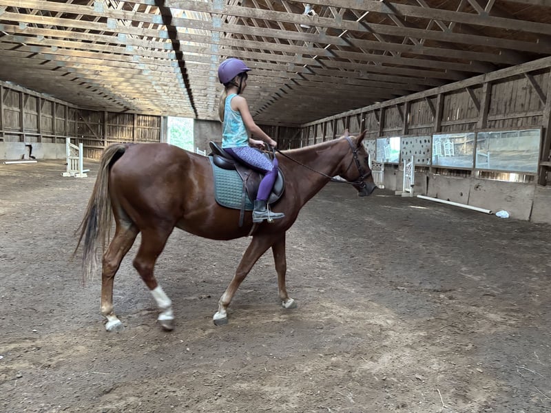 **For Sale: Charming Quarter Pony Gelding** Meet our delightful Quarter Pony gelding, 15 years old! This handsome chestnut stands at a perfect 14.2 hands high and is ready to find his next adventure partner. With a gentle disposition and a love for the trail, he excels in outdoor settings, making him an ideal companion for leisurely rides or more adventurous outings. His smooth gait and reliable nature ensure a comfortable ride - best fit for experienced, assertive riders to keep him. on task. Whether you're looking to enjoy peaceful trail rides or introduce him to new experiences in the arena, this Quarter Pony is ready to shine. Don’t miss the chance to add this wonderful companion to your family! For more information or to schedule a visit, please contact us today!