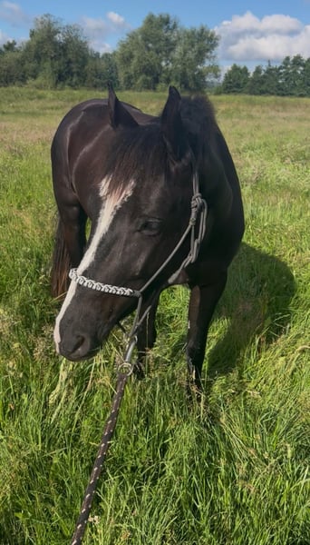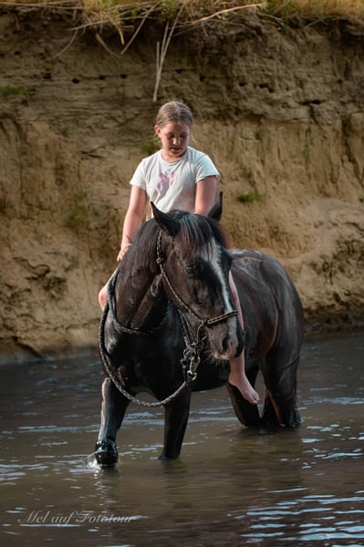 Zum Verkauf steht ein wunderschöner Quarter-Mix Wallach, 3 Jahre alt (geb. 2022), aktuell ca. 1,44 m groß (Stand: 26.10) – er ist noch voll im Wachstum. Dieser junge Wallach überzeugt mit seinem ehrlichen, liebevollen Charakter und seiner großen Menschenbezogenheit. Er ist dem Menschen sehr zugewandt, aufmerksam und stets bemüht, alles richtig zu machen. Er kennt bereits Sattel, Longe, Halle, Reitplatz und lange Spaziergänge im Gelände. Auch beim Baden im Wasser ist er begeistert dabei. Hängerfahren ist kein Thema – er steigt alleine ein. Der Hufschmied klappt ebenfalls sehr gut. Er lässt sich problemlos von anderen Pferden trennen und geht alleine ins Gelände oder in die Halle – ruhig, vertrauensvoll und verlässlich. Auch alleine im Stall zu putzen, füttern oder führen ist überhaupt kein Problem. Er ist rangniedrig, sehr verspielt und kinderlieb. Kennt Offenstall, Boxenhaltung und 24/7-Weidehaltung. 👉 Hinweis: Er verträgt keinen Hafer. Ein absolut toller Partner für Menschen, die sich ein junges, unerschrockenes und treues Pferd wünschen, das mit Freude und Vertrauen in die Zukunft geht. Ideal als Freizeit- oder Westernnachwuchspferd mit Potenzial. - alle Sachen von Charlie , decken , Sattel etc. kann mit erworben werden .