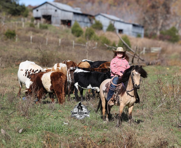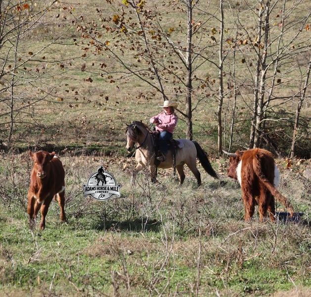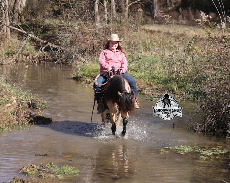 𝐀𝐝𝐚𝐦'𝐬 𝐇𝐨𝐫𝐬𝐞 & 𝐌𝐮𝐥𝐞 𝐂𝐨𝐦𝐩𝐚𝐧𝐲'𝐬 ✷𝑬𝒗𝒆𝒓𝒚 𝑴𝒊𝒍𝒆 𝑨 𝑴𝒆𝒎𝒐𝒓𝒚✷ 𝐄𝐗𝐂𝐋𝐔𝐒𝐈𝐕𝐄 𝐒𝐀𝐋𝐄 Happening now thru MONDAY | FEBRUARY 2nd - Available EXCLUSIVELY on HorseBid's website! For more details and to register visit: www.Horsebid.com CONSIGNOR CONTACT: Adams Horse and Mule Company 606-308-2461 LOCATION: Mt. Vernon, KY BREED: Quarter Pony REGISTERED: No COLOR: Buckskin HEIGHT: 11.2 AGE: 5 GENDER: Gelding One of the bittersweet things about having children is seeing them grow up before your eyes and as I have come to find out they grow up too quickly! From first steps to running wild, from first ride to first pony and now, as much as it breaks dad’s heart, we are at that crossroads with Lynnlee of going from first pony (Keychain) to first horse. Keychain has been Lynnlee’s first pony that she rode all on her own, her “Big Girl” pony. The one that we never worried about when she headed out alone, the one that she just went and caught on her own, spent hours brushing, braiding, putting mane and tail products in his mane (they worked as you can see). Keychain has been her real life Barbie pony that she has played with virtually every day after school and all summer long. We could never thank this pony enough for all that he has done for building Lynnlee’s confidence as a rider, Keychain is a once in a lifetime pony, a true unicorn… Keychain is a 11.2h, stout built, 5 year old, quarter pony and he is that amazing buckskin color! He is every little boy’s or little girl’s dream come to life! Keychain has been Lynnlee’s whole world for the last two years and now it’s time to move him along to another family and let him do his job of teaching some other kids how to ride while setting them on the path of many years of success in the saddle. Keychain has the experience that is needed and he is the perfect size to carry any size kid. (For reference) Lynnlee is 8 years old and 4 foot 9 inches tall. Keychain is responsible for millions of smiles, thousands of giggles, and countless miles and hours of fun with his best pal Lynnlee… all while doing it flawlessly, completely safe and as close to perfection as a horse can get. Even early on before Keychain gave Lynnlee the confidence that she has now, he would tolerate her mistakes with the reins, he would never take advantage of her and was very patient. In no way, shape or form has or will Keychain ever be head strong or spoiled acting, he is ALWAYS super agreeable and easy going. Confidence comes easy with him as he is one hand broke, he neckreins around and goes anywhere that you point him, he walks quietly but moves out when asked. Keychain has the absolute best lope of any pony that I have ever saw, it’s like he just floats on air without touching the ground, so soft, so smooth, he takes the correct leads and will lope out of his tracks from a stand still. He just floats along slow and easy while on a complete loose/draped rein or with the reins dropped on the saddle horn. Keychain has been used at a couple different rodeos for pony rides and in one night we had over 100 kids of all ages ride him. He was a perfect gentleman and super patient with some of the special needs kids. He has been ridden through town, is traffic safe, ridden around cows and down the trails. He is a trail riding machine and will take the little riders safely anywhere that the adults can go… creeks, ditches, crosses logs, picks his way through deadfall or rocky paths… he is very sure footed and is not in a hurry! Keychain will ride out alone, leave the barn behind with no issues, will ride in the front of a group or way back behind everyone without a fuss. Keychain is the same horse whether ridden daily or if he is left in the stall or pasture for a few months during the winter. Keychain is very friendly and loves to be groomed, whether that is standing patiently for an hour so Lynnlee can braid every hair that he has or getting soaked with a hose and scrubbed with a half of a bottle of shampoo… Keychain is the perfect kid’s horse, with his patients, confidence, rideability… do your little one a favor and make sure that Keychain’s next home is with them! For more info call 606-308-2461.