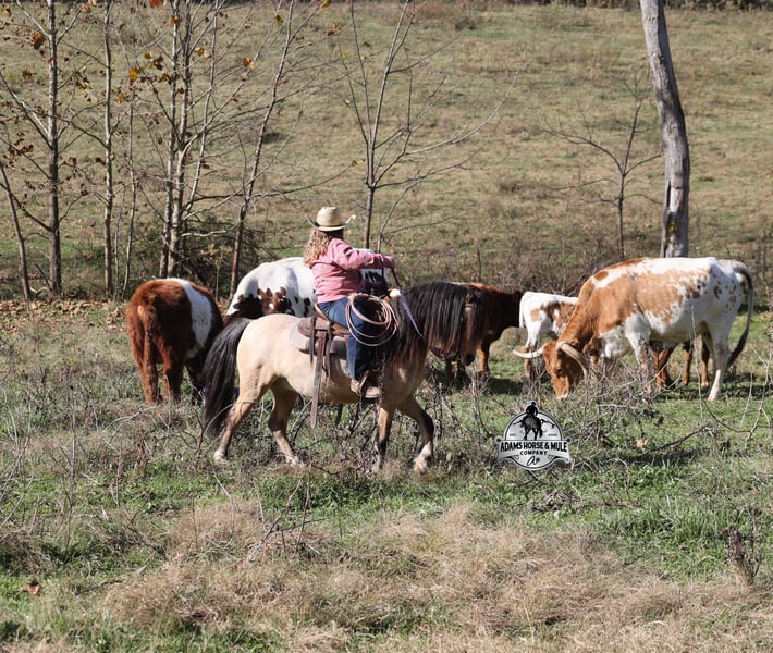 𝐀𝐝𝐚𝐦'𝐬 𝐇𝐨𝐫𝐬𝐞 & 𝐌𝐮𝐥𝐞 𝐂𝐨𝐦𝐩𝐚𝐧𝐲'𝐬 ✷𝑬𝒗𝒆𝒓𝒚 𝑴𝒊𝒍𝒆 𝑨 𝑴𝒆𝒎𝒐𝒓𝒚✷ 𝐄𝐗𝐂𝐋𝐔𝐒𝐈𝐕𝐄 𝐒𝐀𝐋𝐄 Happening now thru MONDAY | FEBRUARY 2nd - Available EXCLUSIVELY on HorseBid's website! For more details and to register visit: www.Horsebid.com CONSIGNOR CONTACT: Adams Horse and Mule Company 606-308-2461 LOCATION: Mt. Vernon, KY BREED: Quarter Pony REGISTERED: No COLOR: Buckskin HEIGHT: 11.2 AGE: 5 GENDER: Gelding One of the bittersweet things about having children is seeing them grow up before your eyes and as I have come to find out they grow up too quickly! From first steps to running wild, from first ride to first pony and now, as much as it breaks dad’s heart, we are at that crossroads with Lynnlee of going from first pony (Keychain) to first horse. Keychain has been Lynnlee’s first pony that she rode all on her own, her “Big Girl” pony. The one that we never worried about when she headed out alone, the one that she just went and caught on her own, spent hours brushing, braiding, putting mane and tail products in his mane (they worked as you can see). Keychain has been her real life Barbie pony that she has played with virtually every day after school and all summer long. We could never thank this pony enough for all that he has done for building Lynnlee’s confidence as a rider, Keychain is a once in a lifetime pony, a true unicorn… Keychain is a 11.2h, stout built, 5 year old, quarter pony and he is that amazing buckskin color! He is every little boy’s or little girl’s dream come to life! Keychain has been Lynnlee’s whole world for the last two years and now it’s time to move him along to another family and let him do his job of teaching some other kids how to ride while setting them on the path of many years of success in the saddle. Keychain has the experience that is needed and he is the perfect size to carry any size kid. (For reference) Lynnlee is 8 years old and 4 foot 9 inches tall. Keychain is responsible for millions of smiles, thousands of giggles, and countless miles and hours of fun with his best pal Lynnlee… all while doing it flawlessly, completely safe and as close to perfection as a horse can get. Even early on before Keychain gave Lynnlee the confidence that she has now, he would tolerate her mistakes with the reins, he would never take advantage of her and was very patient. In no way, shape or form has or will Keychain ever be head strong or spoiled acting, he is ALWAYS super agreeable and easy going. Confidence comes easy with him as he is one hand broke, he neckreins around and goes anywhere that you point him, he walks quietly but moves out when asked. Keychain has the absolute best lope of any pony that I have ever saw, it’s like he just floats on air without touching the ground, so soft, so smooth, he takes the correct leads and will lope out of his tracks from a stand still. He just floats along slow and easy while on a complete loose/draped rein or with the reins dropped on the saddle horn. Keychain has been used at a couple different rodeos for pony rides and in one night we had over 100 kids of all ages ride him. He was a perfect gentleman and super patient with some of the special needs kids. He has been ridden through town, is traffic safe, ridden around cows and down the trails. He is a trail riding machine and will take the little riders safely anywhere that the adults can go… creeks, ditches, crosses logs, picks his way through deadfall or rocky paths… he is very sure footed and is not in a hurry! Keychain will ride out alone, leave the barn behind with no issues, will ride in the front of a group or way back behind everyone without a fuss. Keychain is the same horse whether ridden daily or if he is left in the stall or pasture for a few months during the winter. Keychain is very friendly and loves to be groomed, whether that is standing patiently for an hour so Lynnlee can braid every hair that he has or getting soaked with a hose and scrubbed with a half of a bottle of shampoo… Keychain is the perfect kid’s horse, with his patients, confidence, rideability… do your little one a favor and make sure that Keychain’s next home is with them! For more info call 606-308-2461.