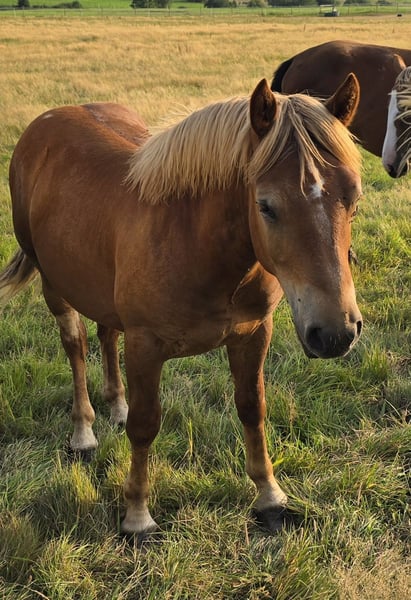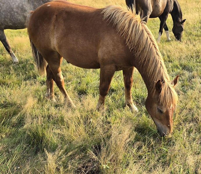 We are offering our cold-blood foal Surprise for sale. Surprise is a stallion, born on August 14, 2024, and has been living in a stallion foal herd since being weaned from his mother. He currently stands at 1.35m. He is accustomed to 24-hour life in the pasture and also spends time in the stable during winter. He is/has: - regularly dewormed and vaccinated - halter trained - familiar with the farrier - basic foal training - walks - trailer loading - cows/tractors/agriculture - children, dogs His mother comes from Hungary and, as seen in the pictures, is a gray, so it is possible that his color may change as well. We have no information about the father, so the breed designation is a guess. In terms of character, he is very people-oriented and fearless, as he is already familiar with various things from the agricultural environment, such as tractors. Our children have been able to groom him independently and also clean his hooves. I can envision him as a great leisure partner with proper training, especially for children, or also as a driving horse. Surprise is microchipped and can be registered at an additional cost upon request.