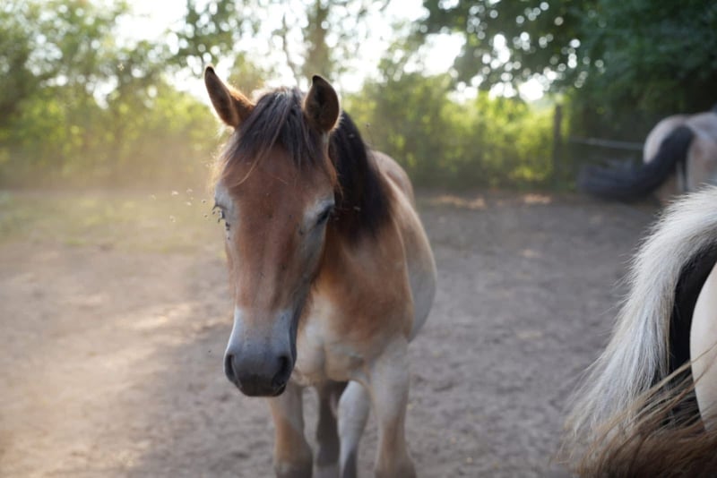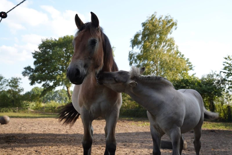 Sehr liebe Stutfohlen, wird in diesem Jahr zwei Jahre alt. Gewöhnt an Hunde und Traktor, läuft wie ein Hund hinter dir her im Weide. Wird eine große Größe erreichen, stammt von einem der besten Züchter aus Deutschland. Gutes Pedigree. Freundlich im Umgang und beim Hufschmied.