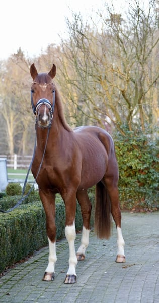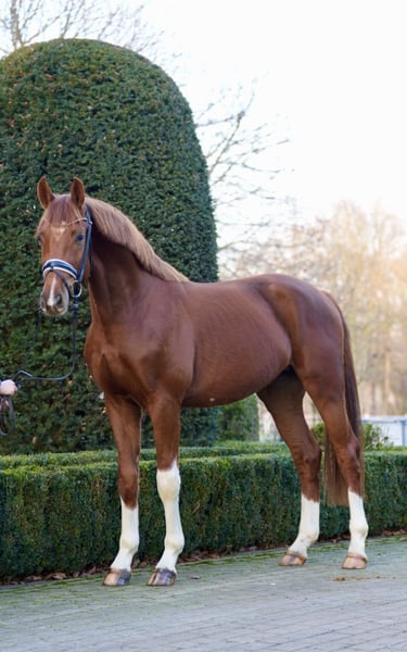 Te koop staat een elegante Rijnlander hengst met perspectief voor de hogere dressuur. Fida, een prachtige donkervos, geboren in 2023, is momenteel ongeveer 1,66 m en overtuigt door zijn moderne uitstraling, uitstekende rijbaarheid en zijn bijzonder aangename karakter. De jonge hengst beschikt over drie kwaliteitsvolle basisgangen met veel takt, elasticiteit en een natuurlijke bergopwaartse houding. Hij toont zich in het dagelijks werk altijd braaf, leergierig en makkelijk in de omgang. De eerste trainingsstappen voert hij vlot en hij is een veelbelovend jong paard voor ambitieuze ruiters. Fider is helder van geest, mensgericht en beschikt over uitstekende voorwaarden voor verdere succesvolle ontwikkeling. Uitstekende röntgenfoto’s zijn beschikbaar. Een proefrit is op elk gewenst moment mogelijk na afspraak. Bij interesse hoor ik graag van u via telefonische contactopname.