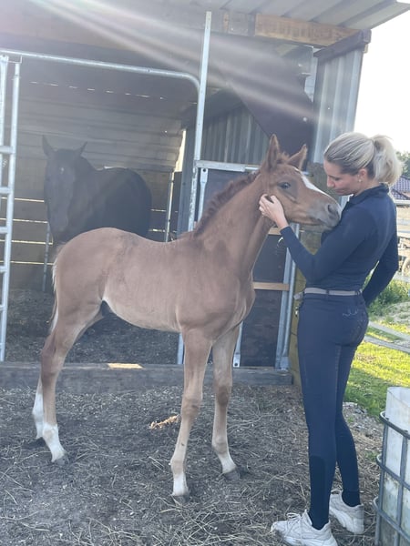 Unfortunately, we cannot raise stallions here, so we are looking for a 5* home for our Night Agent starting at the end of September. Father: Next Golden Champion MF (147cm) (Next Diamond x Golden Wesr) Mother: Sandro Hit x Brentano 2 (170cm) He is already very tall and will definitely exceed 160cm. Current height is 140cm. Registered as a German Riding Pony. Full papers, approved for breeding in the Rhineland. The mother is a performance mare and was herself successful up to the advanced class. The father is highly successful in riding horse tests with scores between 8-9.0! Character 10.0, a foal to fall in love with for sport or as a high-quality leisure partner. Absolutely place before price! He deserves to have a 5* home because he simply does everything right :) Can move out immediately, born mid-April.