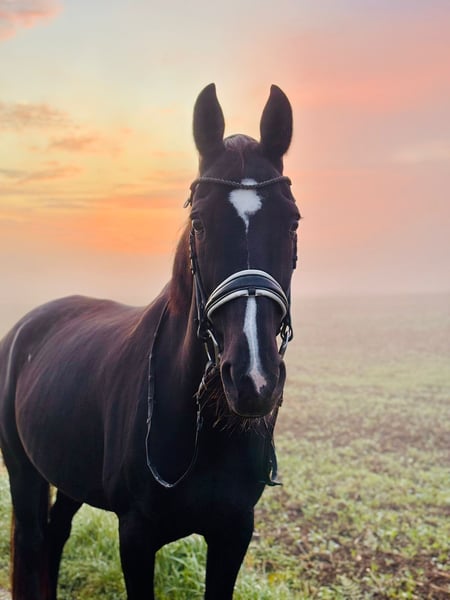 Nach 8 gemeinsamen schönen Jahren suche ich für meine Stute einen neuen Platz auf Lebenszeit. Sie war mein Lehrmeister! Sie beherrscht sämtliche Dressurlektionen von Seitengängen, Traversalen, Außengalopp, fliegende Wechsel etc. Bei uns bestand jede Woche Abwechslung - von Ausreiten, Springen, Dressur etc. Vom Typ her ist sie gehfreudig und stets motiviert zu arbeiten. Unarten wie bocken, steigen u.s.w. kennt sie nicht. Ich selbst habe zwei Kinder, die mit ihr gemeinsam groß geworden sind, nicht reiterlich, aber im Umgang. Hier ist sie absolut vertrauensvoll und man muss nie Angst haben. Turniere sind wir nur wenig gegangen - ein paar A-Dressuren und vereinzelt E-Springen, da bei mir hierfür keine Zeit war. Sie stand viele Jahre in einer Box mit täglichem Weidegang. Seit einigen Jahren ist sie im Offenstall. Hier ist sie eher ranghoch, aber sehr kooperativ und nett zu anderen. Krank war sie in der Zeit nie groß.