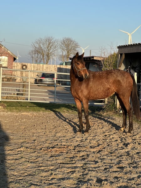 Schöne Stute im kleineren Rahmen derzeit ca. 1.60m groß. Die Stute ist im Herdenverband aufgewachsen und gut sozialisiert. Derzeit noch roh. Abstammung: Galaxy x San Amour https://www.horsetelex.de/horses/pedigree/2489805/sorelle