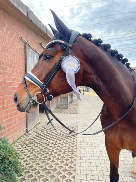Dieser 9 Jähriger Wallach steht zum Verkauf, liebevoll Norbert genannt sucht er seinen neuen Herzensmensch. Er ist ungefähr 1,75m groß- sehr sehr brav und grundsätzlich sehr nett zu reiten. Jedoch braucht er schon einen Reiter der nicht ganz am Anfang seiner reiterlichen Karriere steht. Ich denke man sollte auf einem sicheren A Niveau reiten oder auch höher. Oder mit Ausbindern läuft er auch absolut brav - dann sollte aber jemand da sein der ihn ca.2 mal die Woche auch durcharbeitet. Er ist absolut nicht guckig , frech oder ängstlich. Man kann mit ihm tolle Ausritte genießen, nette Dressurstunden reiten oder auch Springen. Dies hat er aber länger nicht mehr gemacht. Als junges Pferd war er Spr. Pf. A platziert und hat Dr. Pf. A gewonnen. Mit seiner jetzigen Besitzerin und auch mit der Reitbeteiligung ist er mehrfach A Dr. Platziert. Er ist hübsch, dem Menschen sehr zugewandt und offen für neue Abenteuer. Er ist sicher L ausgebildet. Tolles Allrounder Pferd. Die Eierlegendewollmilchsau. Gerne Nachricht an mich bei Interesse . Dann versende ich ein Video.