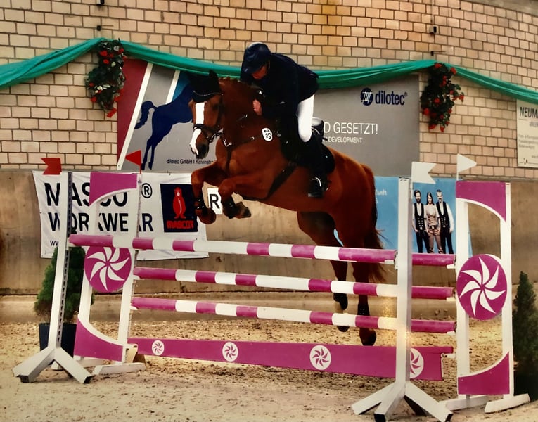 Zum Verkauf steht ein wunderschöner Rheinländer Wallach, geboren 2009, mit einem Stockmaß von 174 cm – ideal für ambitionierte Reiterinnen und Reiter, die einen kraftvollen und zuverlässigen Partner suchen. Fire Fox steht aktuell voll im Training und wird sowohl in der Dressur als auch im Springen gearbeitet. Besonders seine Springleistung überzeugt: Er ist zuverlässig, mutig, verfügt über eine gute Technik und lässt sich auch von schwächeren Reitern gut händeln. Sowohl im Training als auch auf dem Turnier zeigt er sich als absolut verlässlicher Partner. Aufgrund seines ausgeglichenen Wesens kann ich ihn mir außerdem gut als Sportpartner zum direkten Losreiten, aber auch als Freizeitpartner vorstellen. Ebenso könnte er – bei entsprechender Erfahrung – auch von älteren Kindern geritten werden. Bei Interesse und für weitere Informationen stehe ich gerne zur Verfügung. Verkauf aufgrund Aufgabe des Reitsports. Probereiten gegen eine Gebühr von 30€ möglich, die beim Kauf erstattet werden.