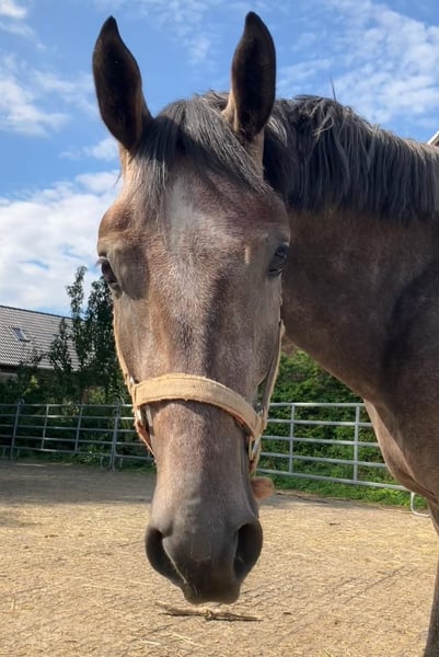 Sterling is a horse of special lineage. His mother, Cattinara, is a Lipizzaner - originally from the Federal Stud Piber in Austria. He was born in 2020 and grew up in a young horse group. Sterling presents himself as a sweet gelding with three beautiful basic gaits and currently has a stunning gray-silver color. Even at the age of four, he gained competition experience in the dressage arena. Although still young at 5 years old, he has already proven to be well-behaved with beginners and re-riders. He is a great leisure horse and enjoys being pampered. At home during training, he also enjoys jumping over small obstacles. His mother, Cattinara (Maestoso Bellamira x Conversano Mantua), has competed in A-level show jumping and A-level dressage with children. His father, Szenario, was successful in show jumping up to the S class. Rimondo: Sterling 46 Instagram: sportpferdezuchtdr.bartels