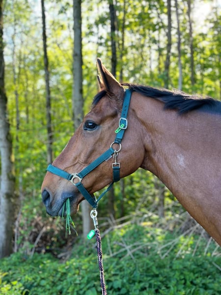 Questo stallone di circa 1,75 m, di 9 anni, si distingue per il suo carattere molto piacevole e il comportamento affidabile nel quotidiano. Si mostra sempre calmo, amichevole e tranquillo, ed è completamente compatibile con il branco, sia al pascolo con altri stalloni che nel paddock durante l'inverno. Si comporta in modo esemplare dal ferratore e durante il carico, ed è attualmente completamente ferrato. Sotto la sella si presenta a livello solido di livello M e padroneggia le rispettive esercizi. I cambi di galoppo sono già avviati, ma non ancora completamente consolidati. Risponde in modo sensibile al cavaliere e può sembrare stressato in caso di aiuti poco chiari, motivo per cui necessita di un cavaliere calmo, empatico e con esperienza, che gli trasmetta sicurezza e lavori con mano sottile. L stallone è un portatore di Kopper, ma a parte questo non presenta altre limitazioni di salute note e si mostra affidabile e stabile nel quotidiano. In generale, rappresenta un compagno affettuoso, ben educato, che può essere ulteriormente sviluppato con la persona giusta. Viene venduto su incarico. Video disponibili su richiesta.