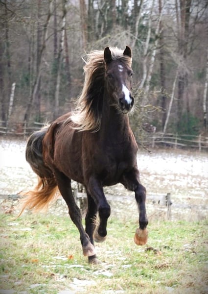 Spring Angel ist eine fünfjährige Silver Dapple Stute mit klarer Ausstrahlung, Charme und echter Rocky-Qualität. Als Enkelin von Heart of Motion vereint sie bewährte, traditionsreiche Linien wie Nuncio, Barlow Chief, Sewell’s Sam, Johnson’s Toby, Spanish Sundown, Amigo Blue, Sam Clement Tim und Toco Sam in den ersten Generationen. Diese Blutführung steht für Beständigkeit, Charakterstärke und nachhaltigen Zuchtwert. Sie ist kompakt gebaut, korrekt im Fundament und entspricht in Typ und Gebäude genau dem, was man sich von einem substanzvollen Rocky Mountain Horse wünscht. Ihre elegante Silver Dapple Farbe unterstreicht ihren harmonischen Körperbau und ihre natürliche Präsenz. Besonders hervorzuheben ist ihr ausgeprägter, natürlicher Vier-Takt mit sicherem Takt und gutem Raumgriff. Ihr Gang ist weich, klar und selbstverständlich vorhanden – keine „antrainierte“ Bewegung, sondern rassetypische Qualität. Unter dem Sattel zeigt sie Elastizität, Komfort und eine angenehme, ehrliche Mitarbeit. Im Charakter überzeugt sie durch Ausgeglichenheit, Nervenstärke und Zuverlässigkeit. Sie ist nicht schreckhaft, bleibt klar im Kopf und zeigt sich im täglichen Umgang freundlich und unkompliziert. Eine echte Rocky-Stute mit stabilem Wesen und ehrlichem Temperament familiengeeignet und vertrauenswürdig. Spring Angel wurde professionell ausgebildet und befindet sich derzeit im Training zur Zertifizierung. Eine vielseitige Stute für anspruchsvolle Freizeit, Show oder perspektivisch Zucht. Pferde mit dieser Kombination aus Charakter, Gang, Typ und bewährter Blutlinie sind nicht selbstverständlich insbesondere in dieser Farbgebung. Standort: Deutschland.