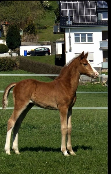 Dieses außergewöhnlich typvolle Hengstfohlen überzeugt durch seine moderne, sportliche Linie und seine hervorragende genetische Absicherung. Der Vater Zinedine steht für Vermögen, Rittigkeit und Qualität. Die Mutterlinie ist besonders wertvoll: Zwei gekörte Hengste aus derselben Stute sprechen für Vererbungssicherheit und Zuchtpotenzial.