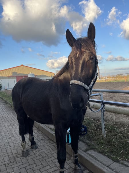 Schweren Herzens möchte ich mich von meinem 4 jährigen 1,70 m großen schonend angerittenen schweren Warmblut Wallach trennen. Da mir die Doppel Belastung für 2 Pferde zu teuer geworden ist. Ich habe Torn mit 1,5 Jahren gekauft und seid dem ihn schonend drauf vorbereitet ein Reitpferd zu werden. Er hat sich ohne Probleme anreiten lassen und auch in seiner weiteren Ausbildung ist er einfach ein Schatz. Er ist allerdings nicht leitrittig er will schon getrieben werden. Ich sehe ihm im Freizeitbereich oder an der Kutsche. doppellonge kennt er angefahren ist er aber nicht. Er is sehr lieb im Umgang Schmiede und verlade from Nur bei wirklichem Interesse und auch nur in richtig gute Hände abzugeben.