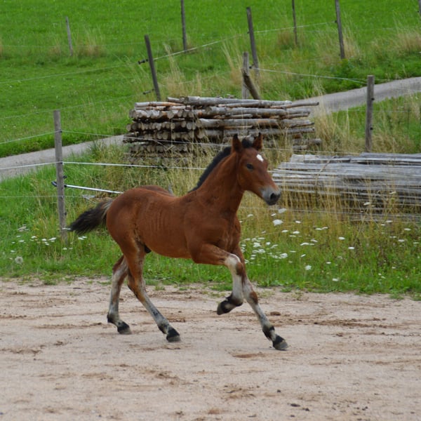 Donatus von Dachsbub aus unserer Armada ist ein wahrer Hingucker. Der langbeinige, elegante, bewegungsstarke Hengst verkörpert den modernen Schwarzwäldertyp. Sein Halbbruder ist der Bundesprämienhengst Rasputin. Donatus wird sich als ambitioniertes Freizeitpferd und/oder als Hengstanwärter bewähren. Er wächst bei im gemischten Herdenverband auf und kennt alles was ein Fohlen in dem Alter kennen sollte. Hufe geben, angebunden sein, führen, Kinder und landwirtschaftliche Maschinen. Wir hoffen auf ein eine gesunde Zukunft für diesen Prachtkerl.