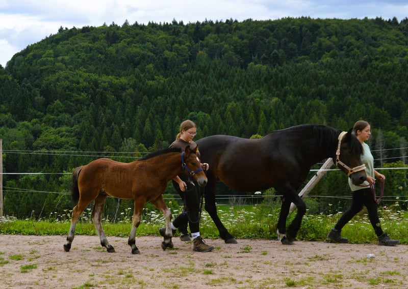 Donatus von Dachsbub from our Armada is a true eye-catcher. The long-legged, elegant, and athletic stallion embodies the modern Black Forest type. His half-brother is the federal premium stallion Rasputin. Donatus will prove himself as an ambitious leisure horse and/or as a stallion candidate. He is growing up in a mixed herd and is familiar with everything a foal of his age should know: hoof handling, being tied up, leading, children, and agricultural machinery. We hope for a healthy future for this magnificent fellow.