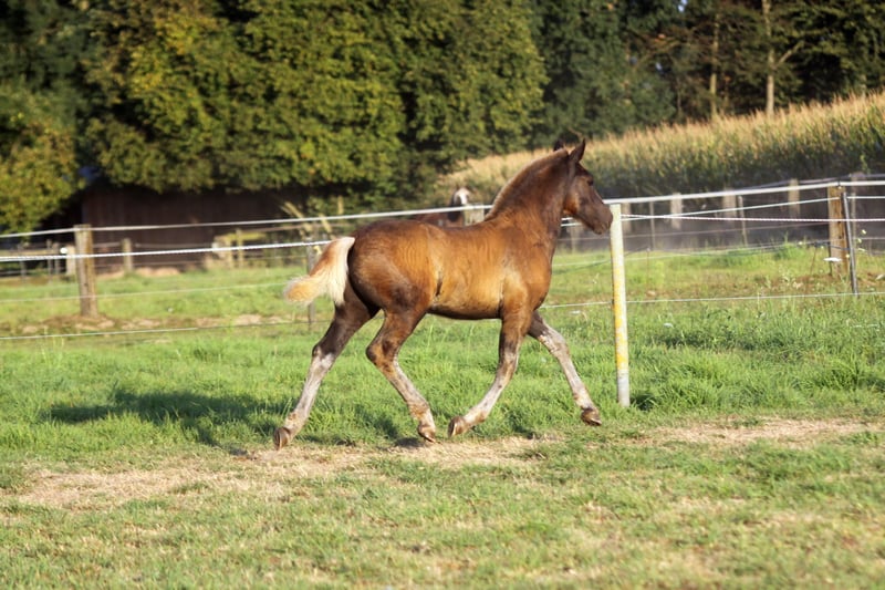 Zum Verkauf steht ein Schwarzwälder Hengstfohlen, geboren am 06.06.2025 Mirado ist von Geburt an täglich an der Hand, kennt putzen, geht brav am Halfter, gibt alle 4 Hufe und kennt natürlich den Schmied, Anbinden und alles was ein Fohlen so können sollte. Er ist dem Menschen stets zugewandt, lässt sich gerne kraulen und liebt es beschäftigt zu werden. Bis auf auf ein paar wenige weiße Haare auf seiner Stirn ist er ansonsten komplett ohne Abzeichen und Kohlfuchs. Mirado ist mit einem weiteren Stutfohlen bisher aufgewachsen und bisher nicht abgesetzt (könnte er aber jederzeit). Auf der Fohlenschau wurde er mit der Fohlenprämie ausgezeichnet und besonders für seinen Typ und die gute Trabbewegung gelobt. Mirado stammt ab von Markus aus der Rapunzel von Don Olewo Mutter Rapunzel ist Staatsprämienstute und legte 2011 erfolgreich ihre Leistungsprüfung ab. Bis 2021 war sie mit mir auf Fahrturnieren bis zur Kl. M erfolgreich. Unter anderem wurden wir 5. Auf der DJM 2021 in Lähden. Neben ihrer Leistungsbereitschaft zeigte sie aber auch bei Festumzügen, als St. Martinspferd oder auch bei Zirzensikvorführungen ihre Nervenstärke und Können. Vater Markus vom HuL Marbach war Reservesiegerhengst seiner Körung, Sieger bei seiner Leistungsprüfung und wurde 2017 Bundessiegerhengst. Mutter, Oma, Tante, Cousine (3. der Bundeskaltblutschau in diesem Jahr und Bundesprämienstute) können vor Ort besichtigt werden. PSSM negativ über die Eltern