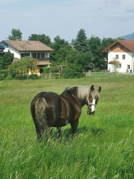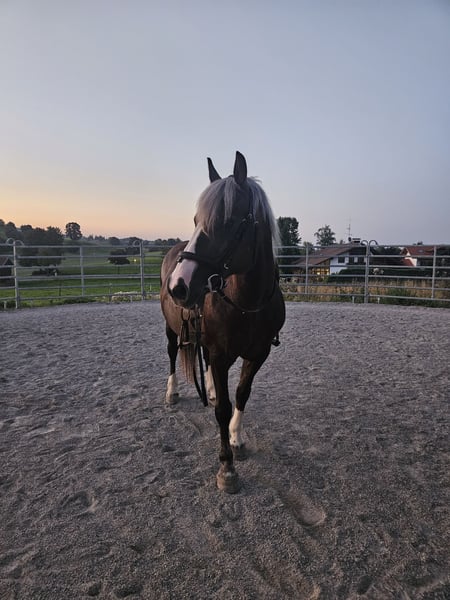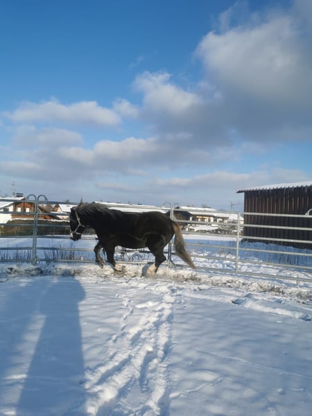 Ich suche für meine geliebte Paula ein neues zu Hause. Paula ist eine 14-jährige Schwarzwälder Stute. Dem Menschen gegenüber zeigt sie sich sehr ruhig und freundlich. Sie ist meistens sehr gemütlich unterwegs. Bei unbekanntem wird sie mamchmal etwas unsicher und braucht eine ruhige Person, die ihr Sicherheit gibt. (Traktoren, LKW's, Autos, Schafe und Kühe sind kein Probelm) Sie lässt sich gut händeln und ist bisher noch nie gestiegen, hat gebuckelt oder ist in Panik geraten (bin eher Angstreiter, habe mich selten unsicher gefühlt). Waren immer viel im Gelände unterwegs, sowohl geritten als auch geführt. Kleine Wanderungen (geführt, 3-4h), baden gehen und neue/unbekannte Wege erkunden. Diesen Winter sind wir auch zum ersten Mal mit ihr Schlitten gefahren. Bei allem war sie sehr brav dabei. Sie ist Offenstallhaltung gewöhnt und ist in der Herde rangniedrig und geht Ärger aus dem Weg. Ich möchte jemanden, der entspannte Ausritte oder Spaziergänge mit ihr unternimmt, dem sie ihr volles Vertrauen schenken kann und der einfach die Zeit mit ihr genießt. Equipment kann mit dazu erworben werden. Für mehrere Infos, gerne einfach melden.